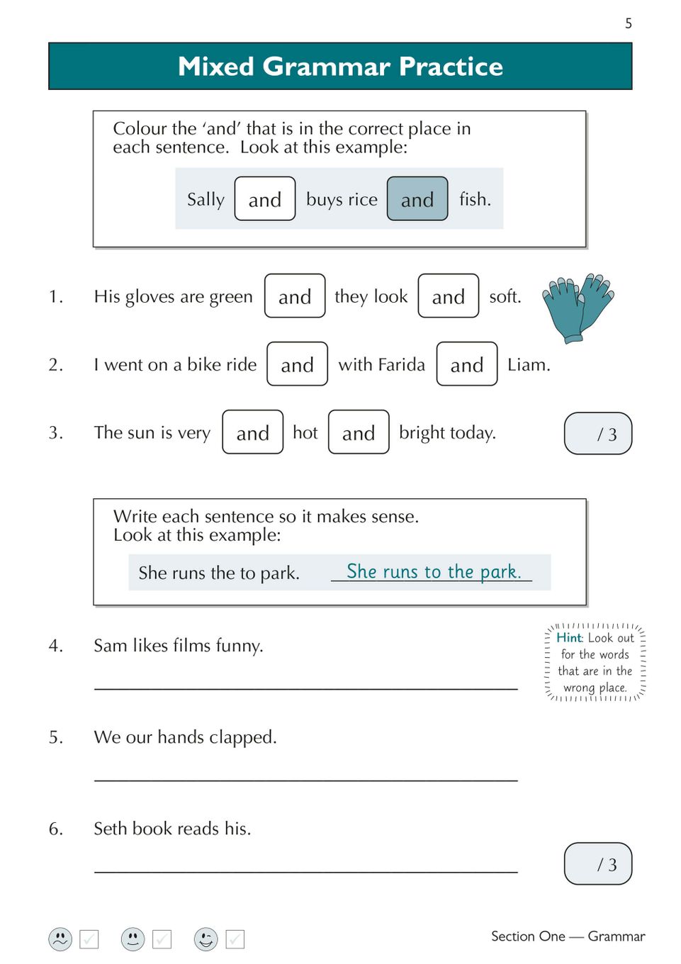 Clear, age-appropriate grammar exercises help children practise sentence structure and punctuation at the right level.