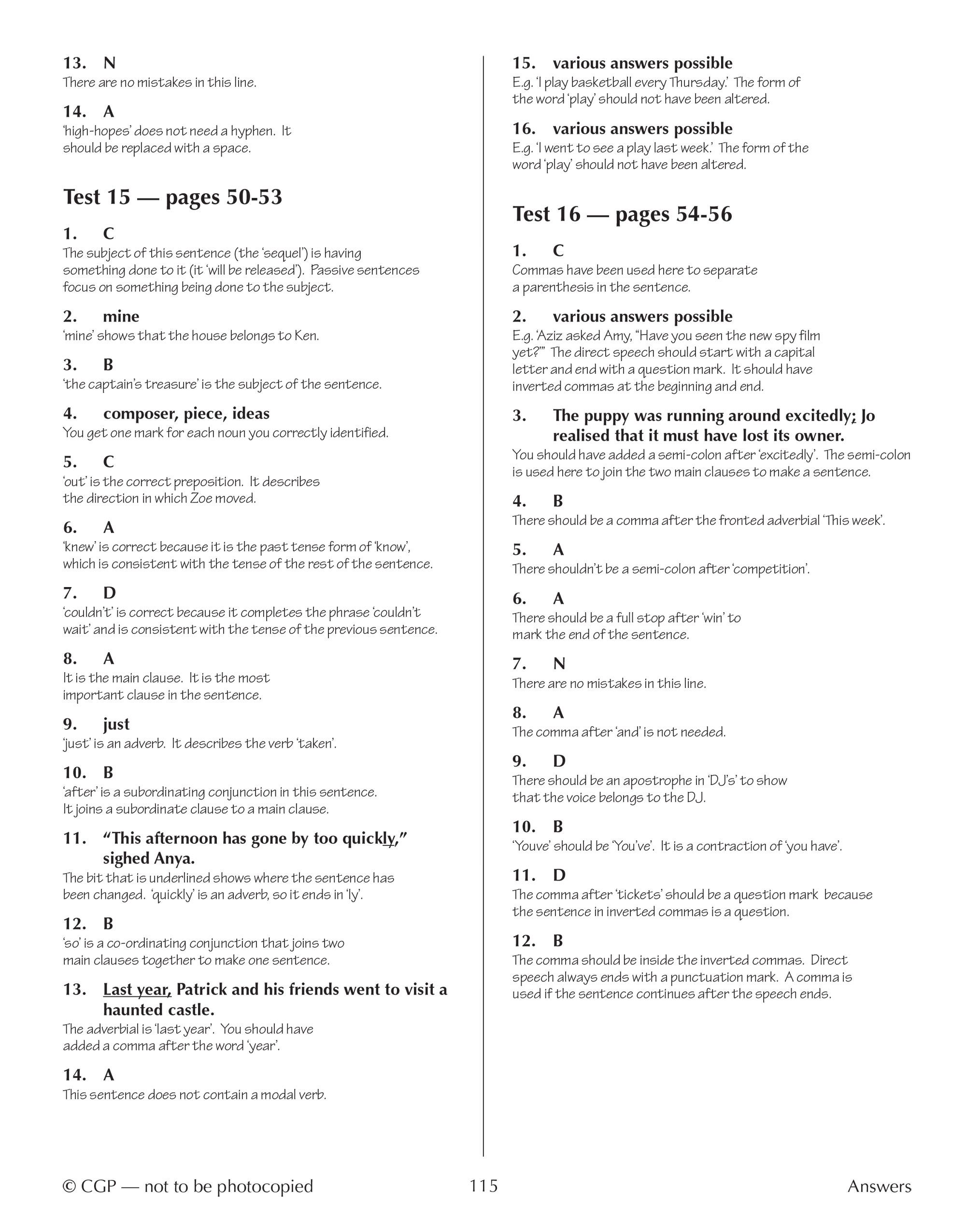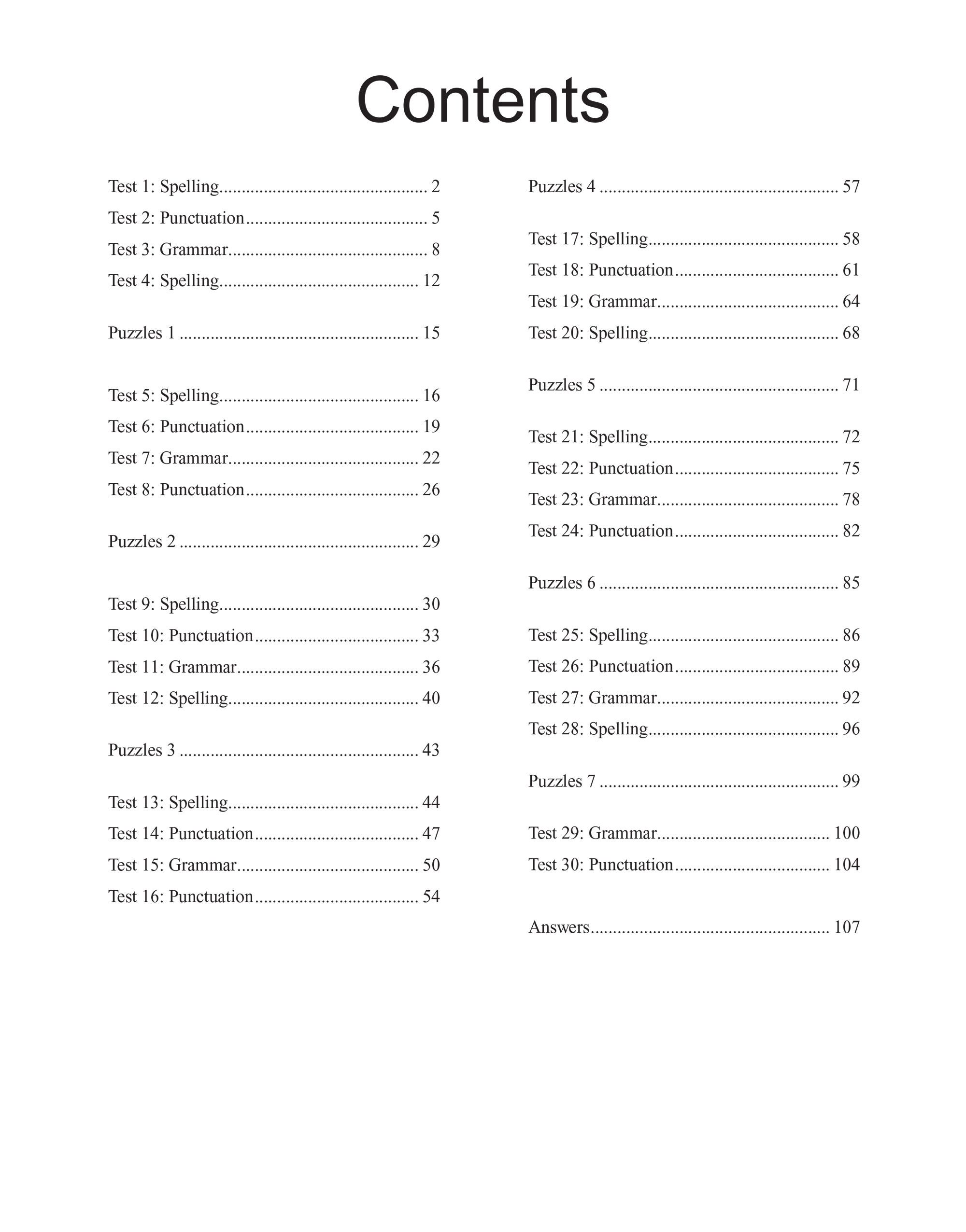 Every test is carefully structured to cover the grammar, punctuation and spelling topics that appear most frequently in 11+ exams, from verb forms and sentence structure to tricky spellings and vocabulary. Detailed answers at the back of the book let you mark work quickly and identify any areas that need extra attention, while a handy progress chart helps you and your child track improvement over time. To keep revision engaging, fun puzzle pages are interspersed throughout the book, offering a welcome break from formal test practice and helping to maintain motivation during longer study sessions.