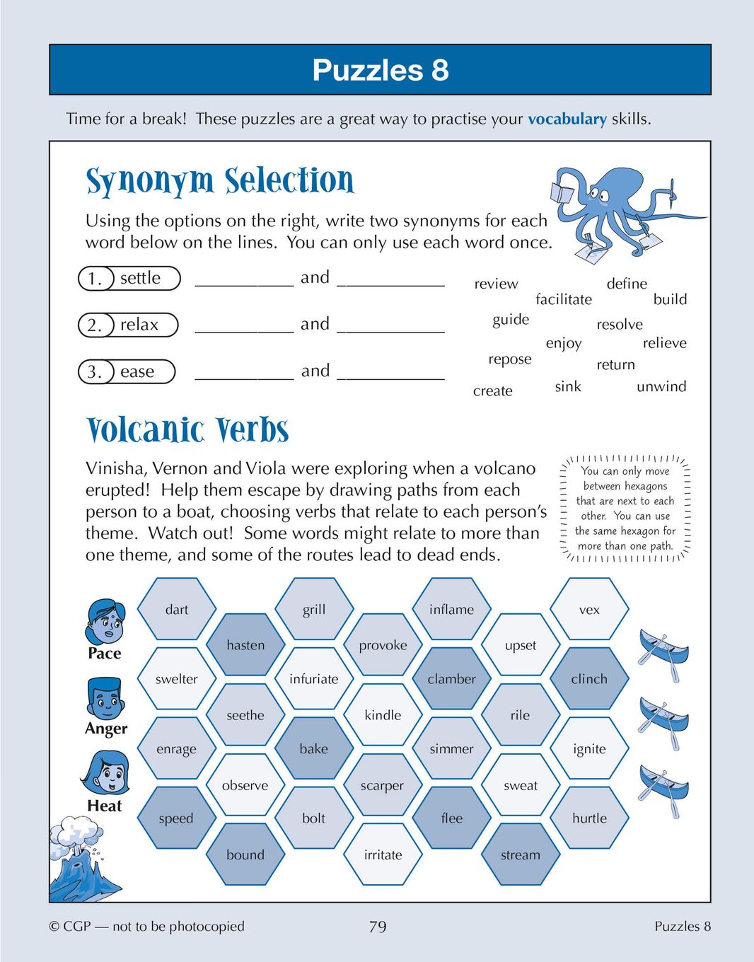 - Fun puzzle pages offer a different way to test vocabulary skills and keep revision engaging