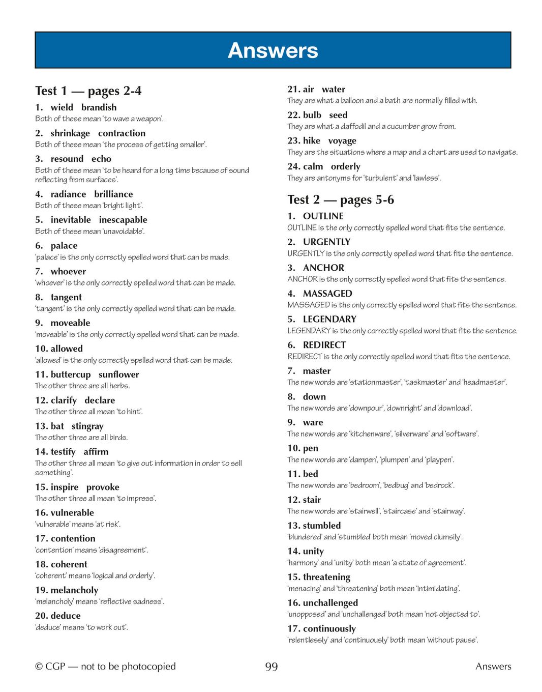 - Over 30 timed 10-minute tests covering synonyms, antonyms, definitions and homophones for GL 11+ exams