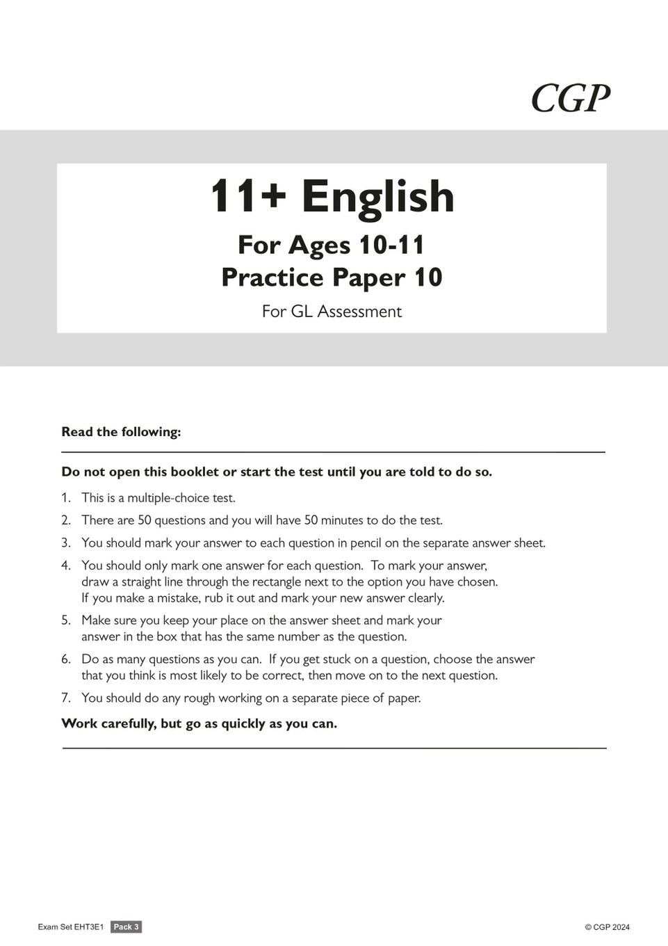 About the 11+ GL English Practice Papers: Ages 10-11 - Pack 3 (with Parents' Guide & Online Edition)