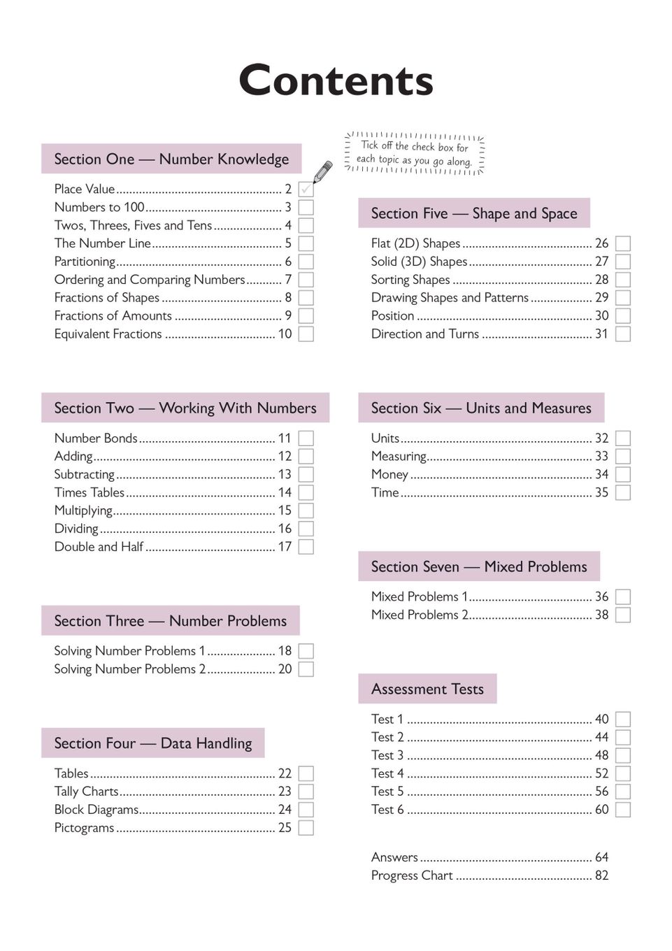 - Topic practice covering counting, mental arithmetic, time, shapes, and problem solving, followed by mixed Assessment Tests to build speed