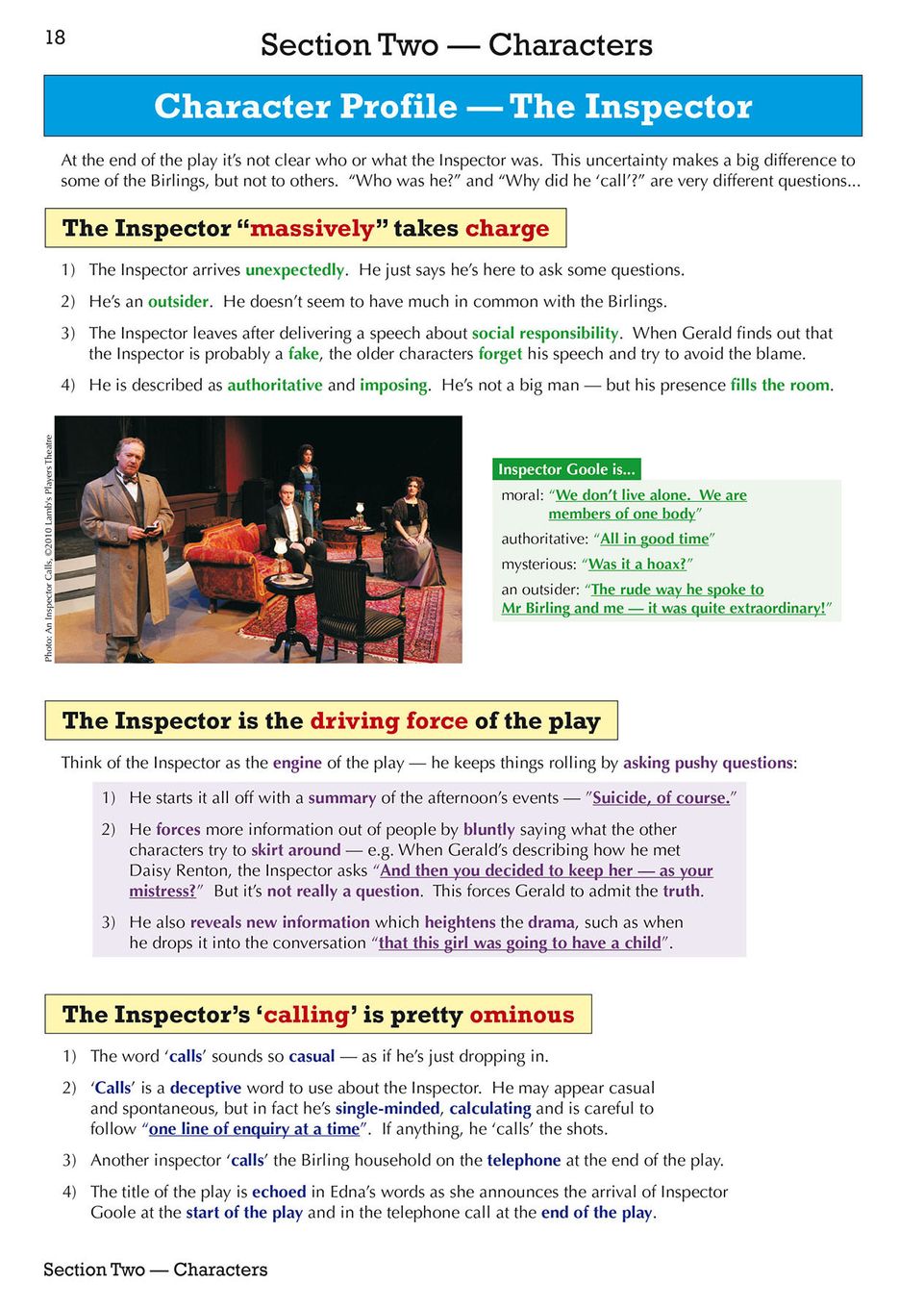 - Complete coverage of plot, characters, themes, context and writer's techniques for An Inspector Calls