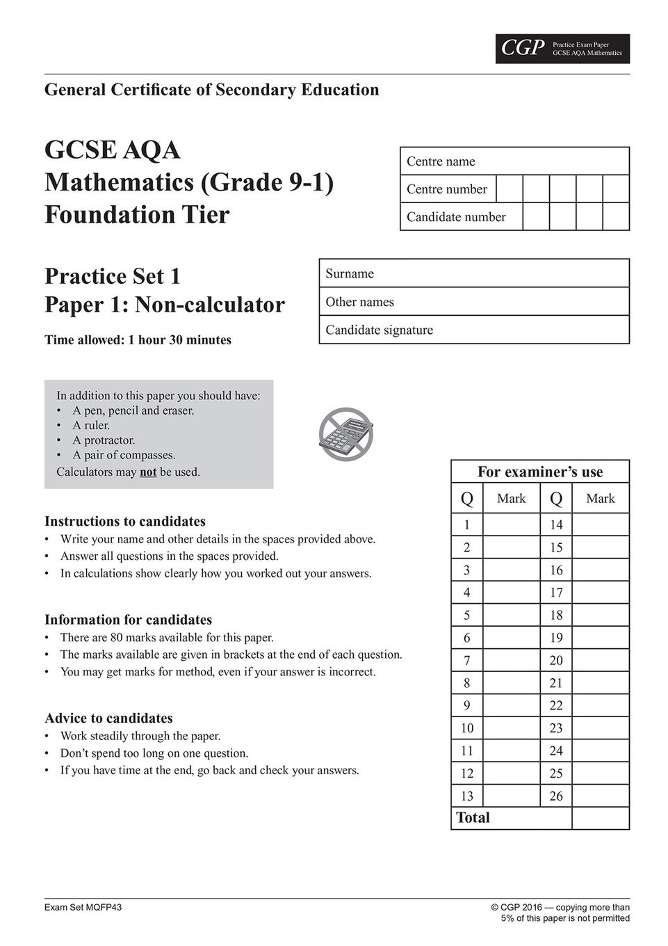 - Six realistic AQA Foundation GCSE Maths practice papers—two complete sets—perfectly matched to the Grade 9–1 specification