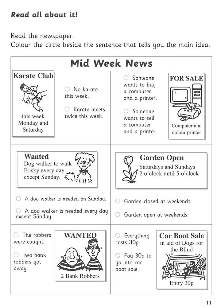 - Progression from picture-based activities in Books 1 and 2 to fiction, non-fiction, notices and newspaper articles in Book 3