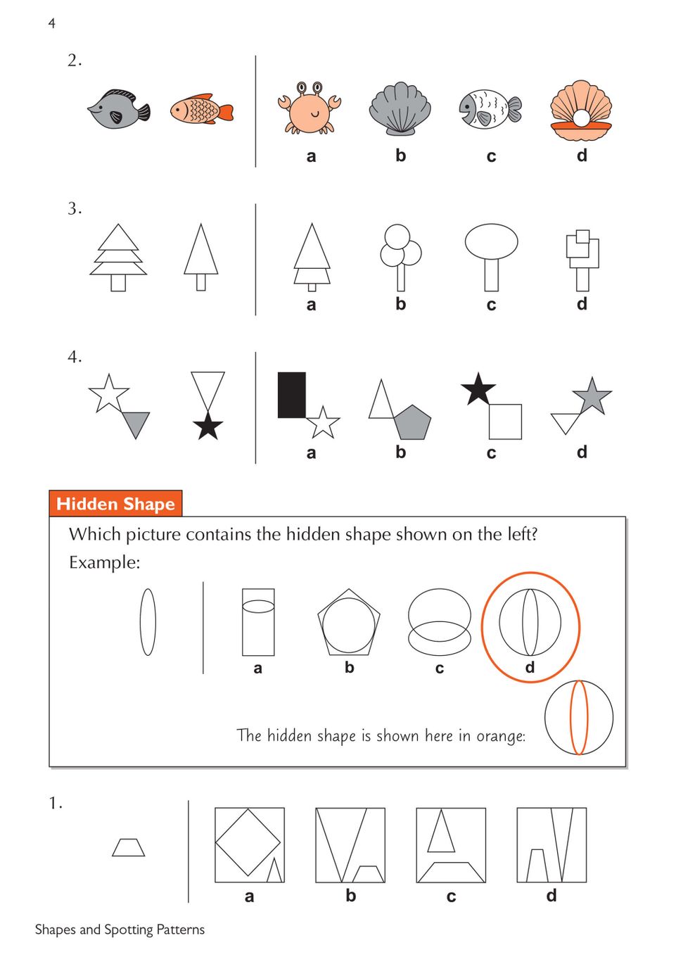 Non-Verbal Reasoning practice page showing shape-matching and pattern-spotting exercises with multiple-choice answers