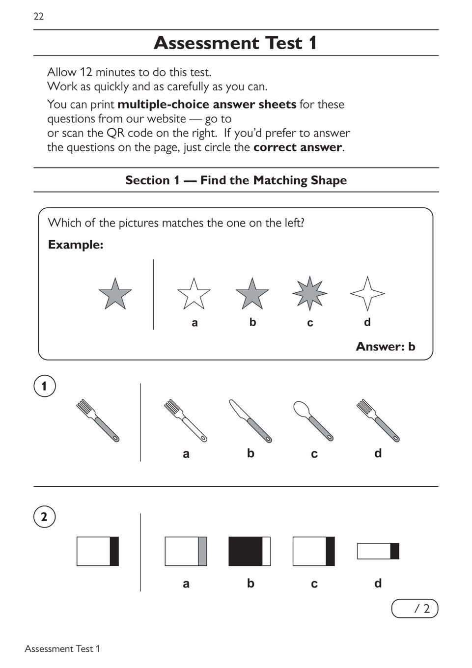 Sample Non-Verbal Reasoning page demonstrating shape and pattern questions, with clear examples and age-appropriate multiple-choice formats.