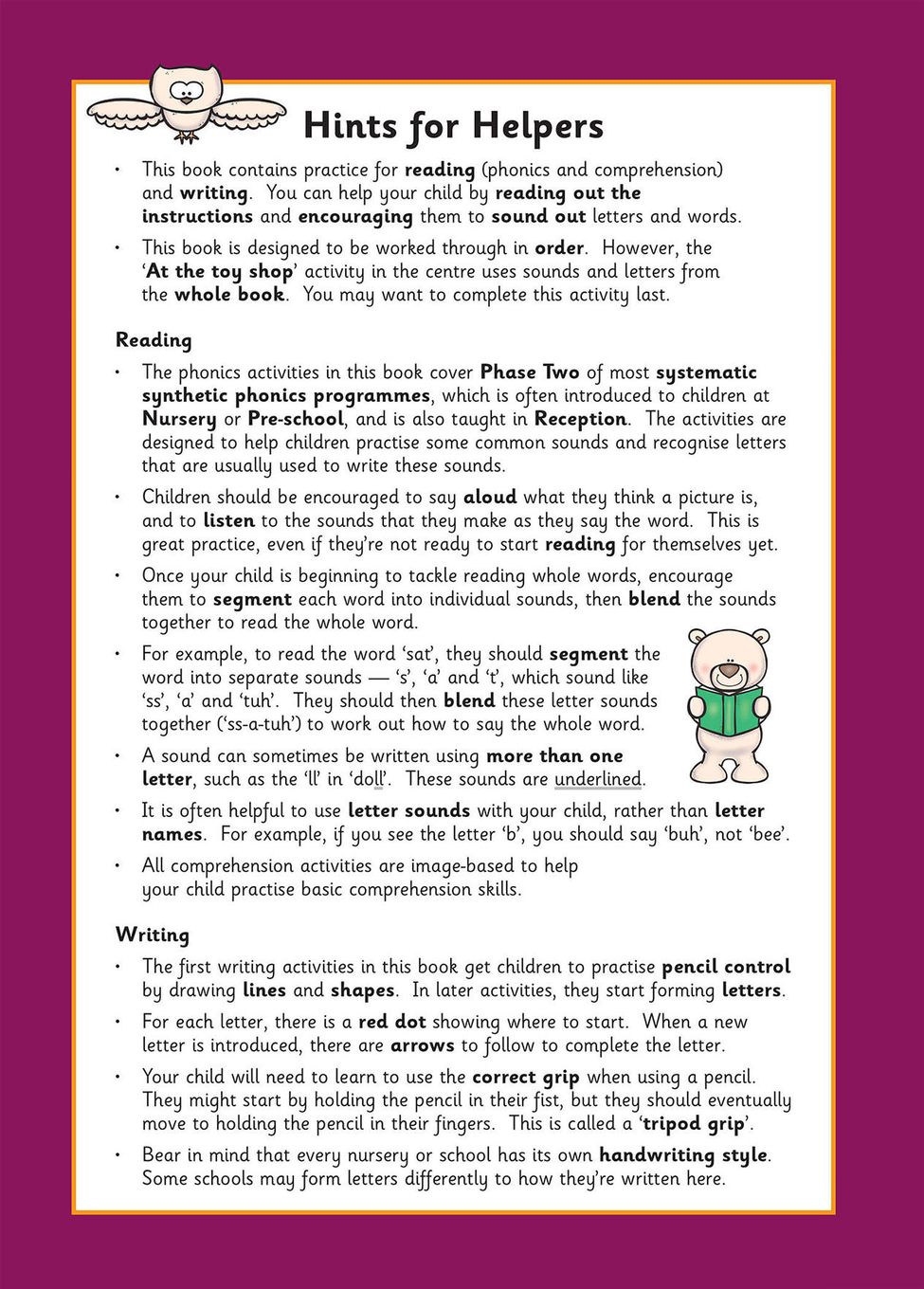 - Covers phonics, handwriting, vocabulary, writing and reading comprehension for ages 3-4