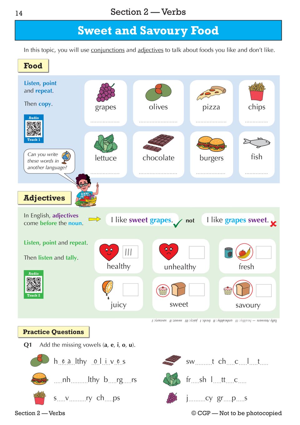This 64-page workbook covers essential everyday topics—transport, emotions, school subjects, food preferences, and more—through practical exercises that develop listening, speaking, reading, and writing skills together. Each section includes QR codes that link to free audio tracks, so your child hears correct pronunciation and practises alongside native speakers at home. Full answers are included at the back, giving you both immediate feedback and the confidence to support independent learning. It's aimed at students at DfE English proficiency level 'A', making it ideal for beginners who need a solid foundation before progressing further.