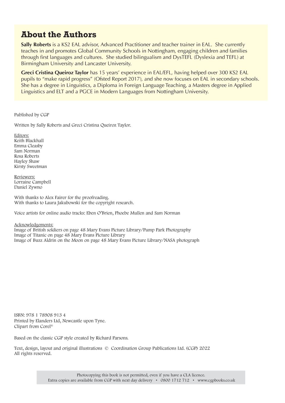Finally, the English as an Additional Language (EAL) for Ages 11-16 - Workbook 2 (Early Acquisition) is also very useful for children studying outside of the UK on comparable international curriculums such as the Cambridge Primary Curriculum or The Pearson Edexcel International Primary Curriculum.