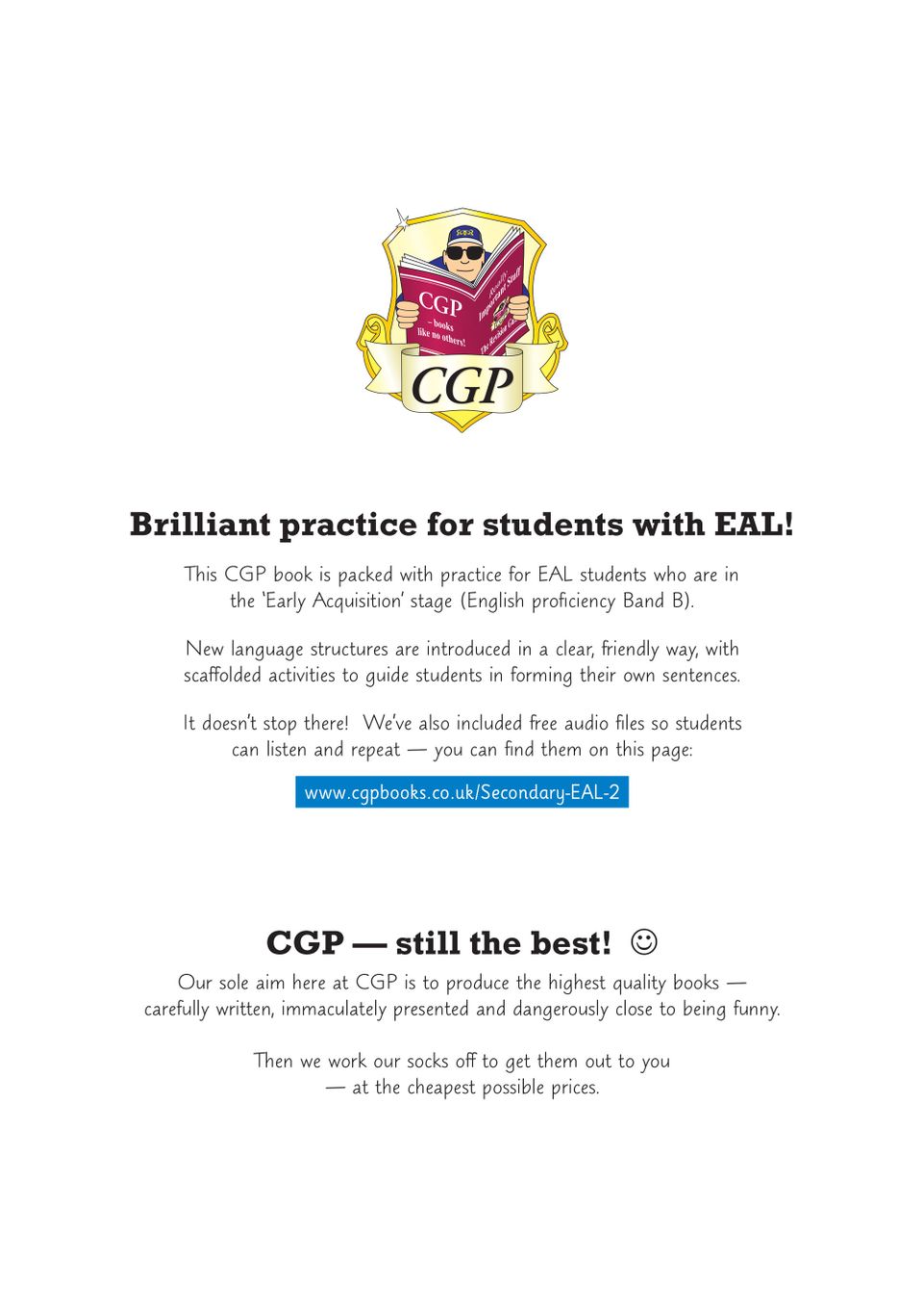 The English as an Additional Language (EAL) for Ages 11-16 - Workbook 2 (Early Acquisition) is absolutely perfect for children in Year 7, Year 8, Year 9, Year 10 or Year 11 studying the national curriculum in England.