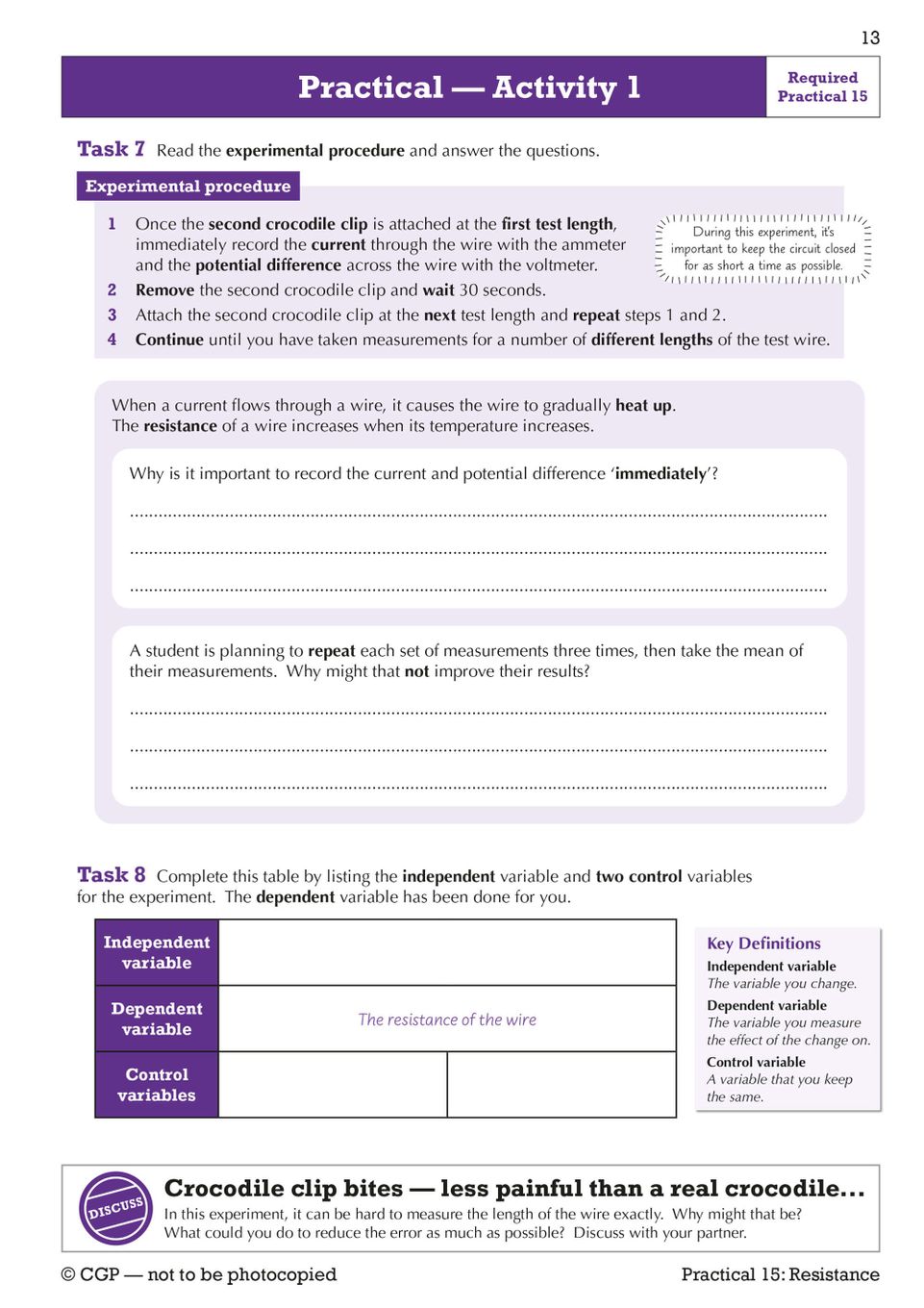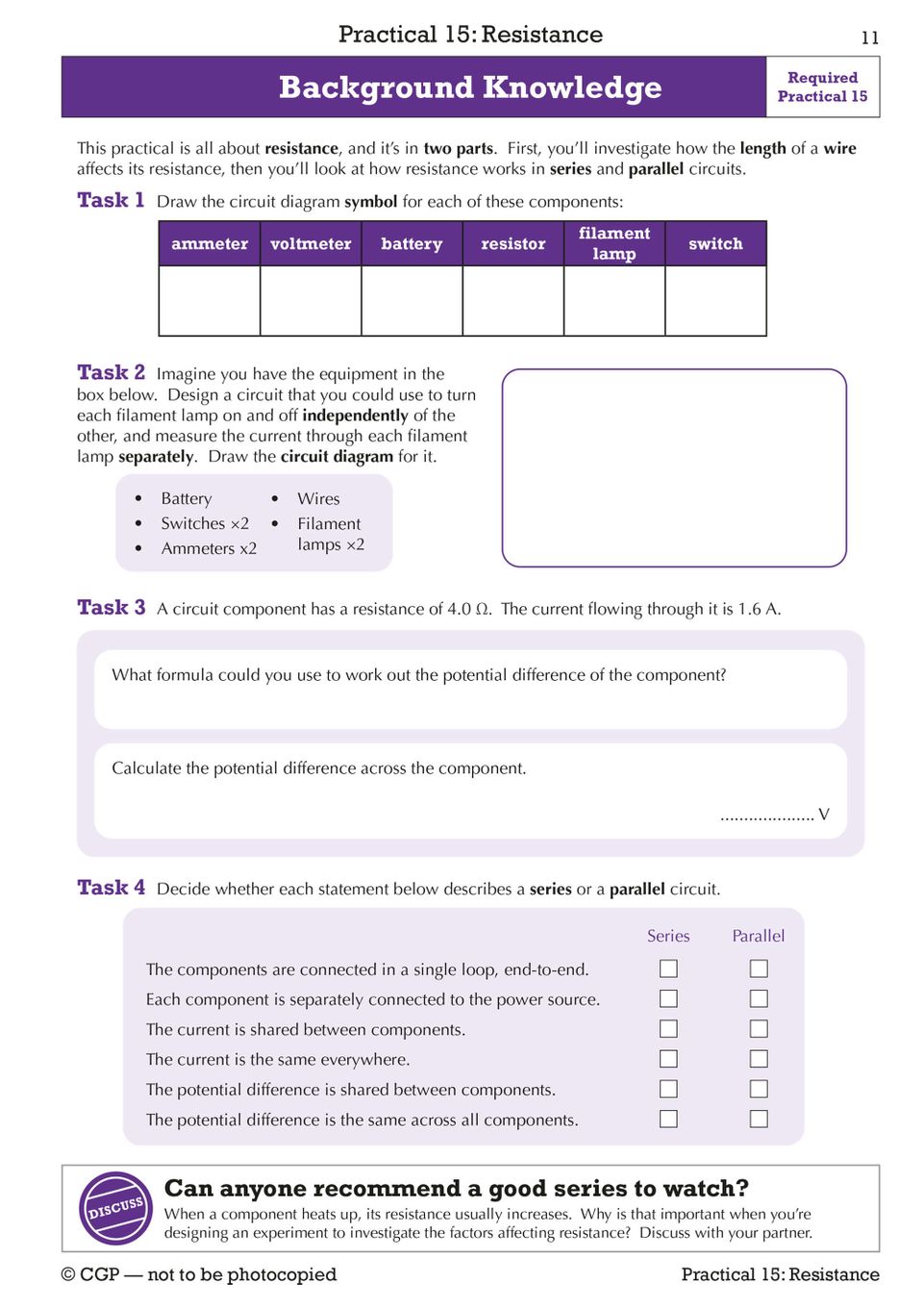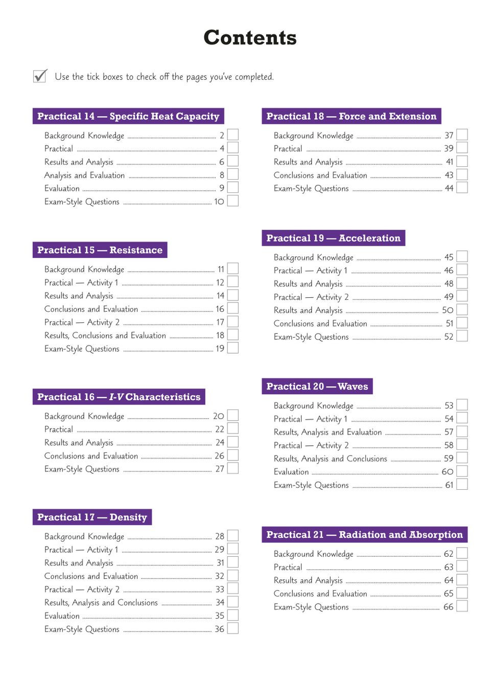 - Includes a full page of exam-style questions for each practical, with complete sample answers and mark schemes online
