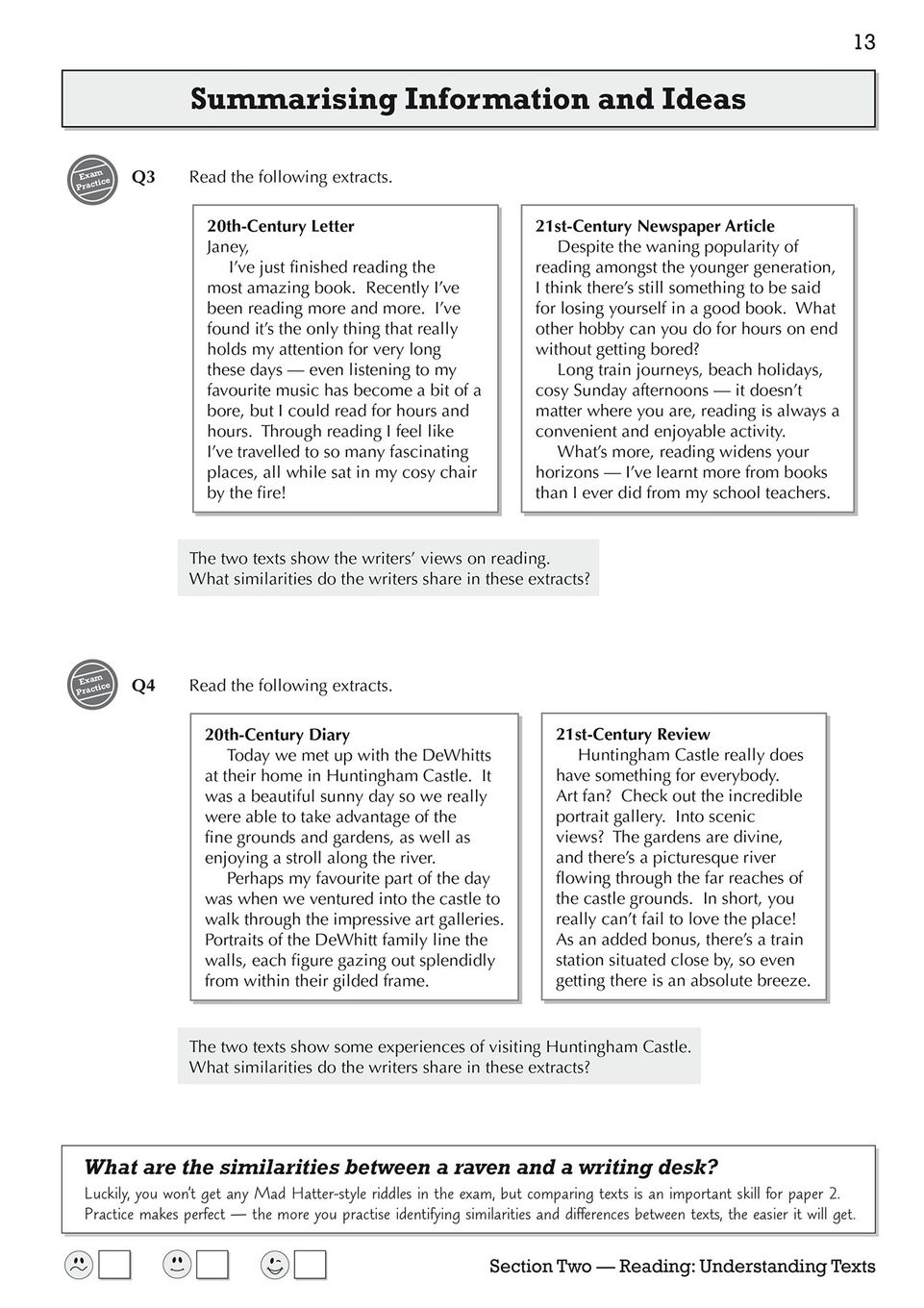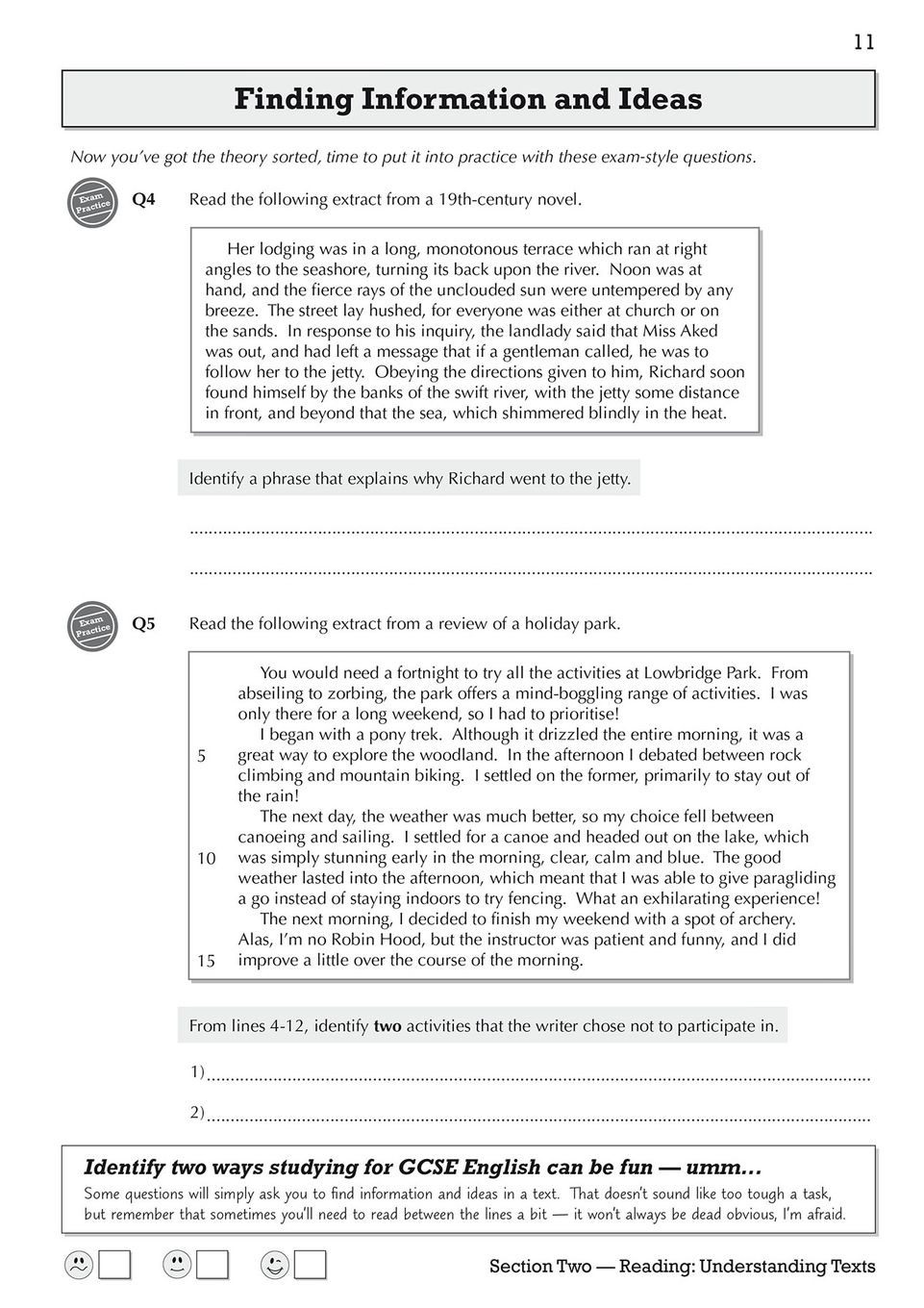 The workbook goes beyond simple question-and-answer drills. It includes a dedicated section where students mark sample exam answers, helping them understand exactly what examiners are looking for and how to hit top-band criteria. Plenty of sample texts run throughout the book, giving teenagers varied practice with the kinds of extracts they'll meet on exam day. At the end, a complete set of practice papers offers realistic, timed preparation that turns nervous guesswork into calm, methodical performance.