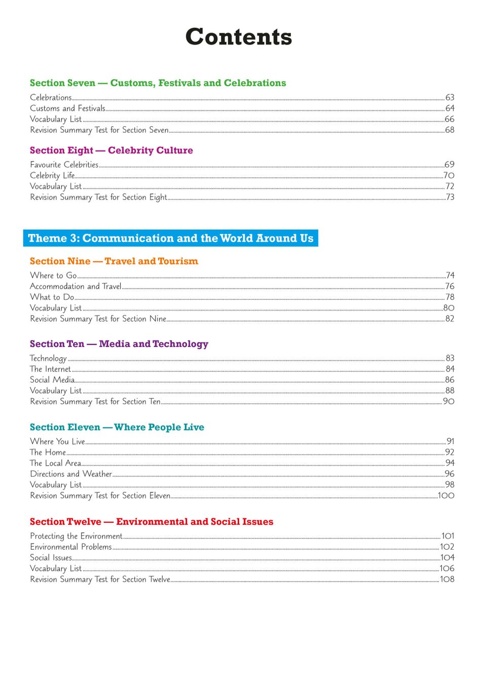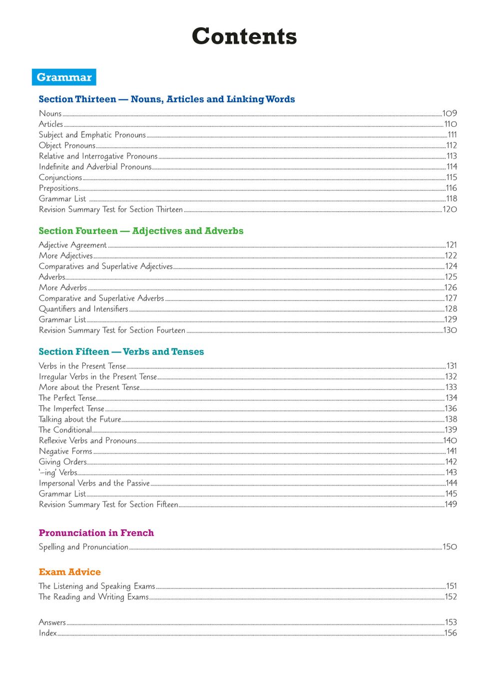 - Structured grammar sections on nouns, adjectives, verbs, tenses, prepositions and sentence-building, with revision tests at the end of each section