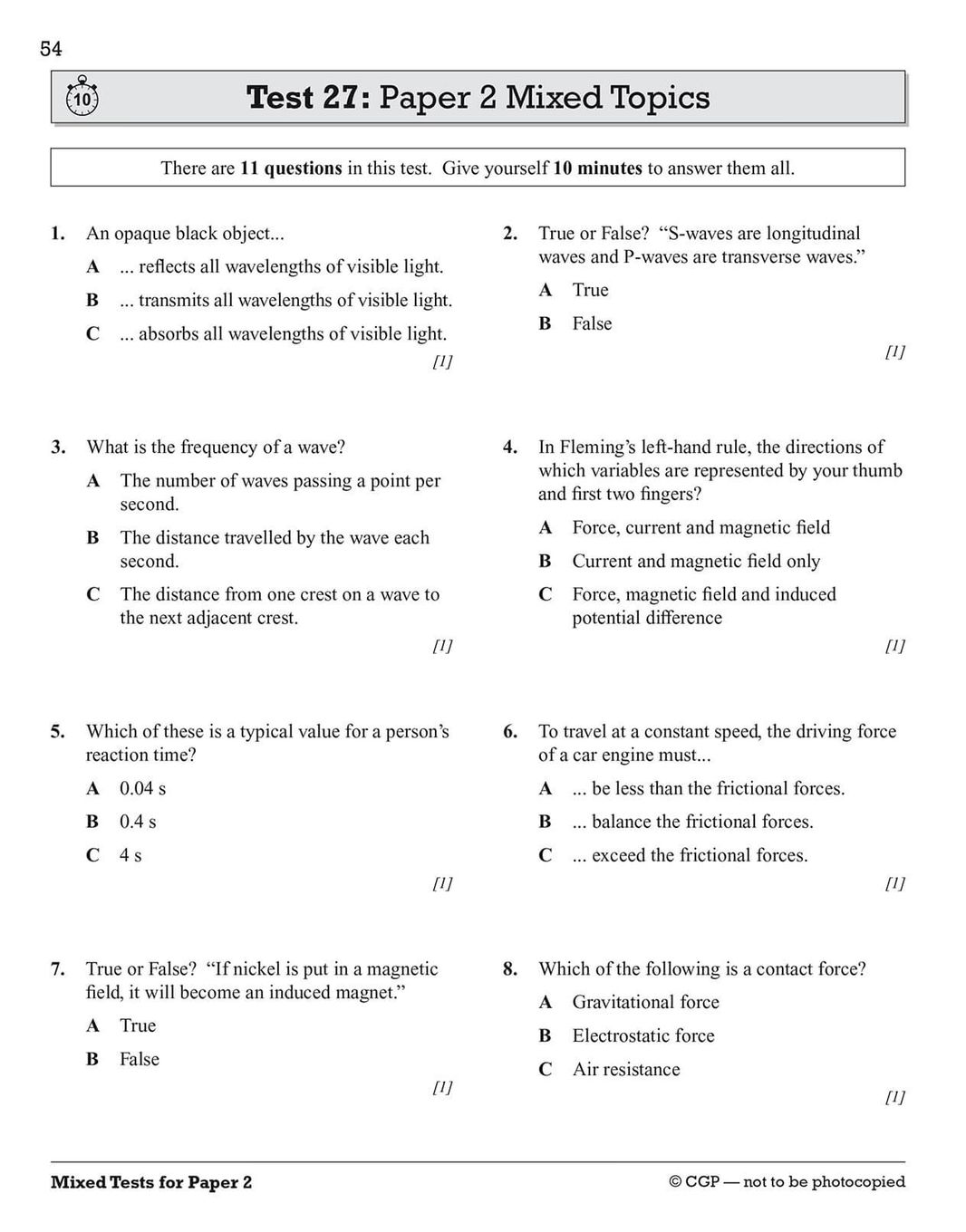 | 1 | GCSE Physics AQA 10-Minute Tests | ENX10562 |