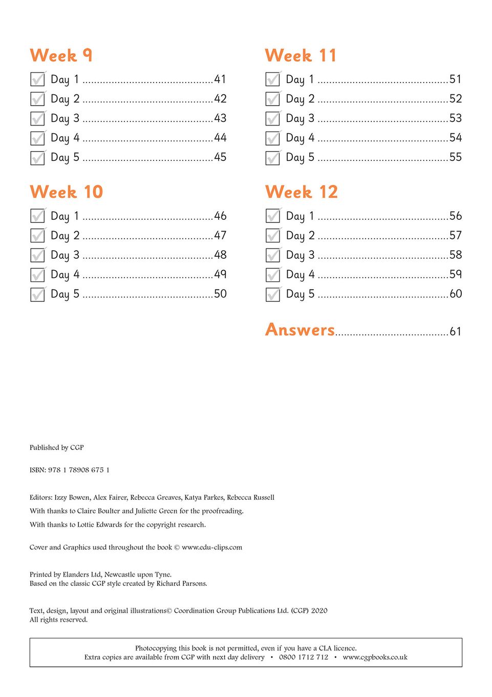 Each daily page opens with a straightforward explanation of the task, followed by colourful questions that keep children engaged without overwhelming them. New topics are introduced gently, then revisited later in the book to help your child remember and apply what they've learned. Every page ends with a score box, so you can track progress at a glance and celebrate small wins together. Answers are included, making it easy to check work quickly and keep confidence high.