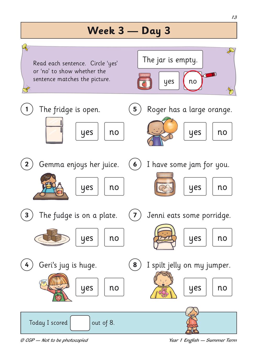 Every daily activity opens with a clear explanation of what to do, followed by a focused set of questions that introduce new topics gradually and revisit them throughout the term to reinforce learning. Colourful characters and engaging exercises keep your child motivated, while the score box at the end of each page makes it simple to track progress and celebrate improvements. Whether you use it at home alongside homework or as independent practice, the structure is straightforward enough for your child to work through with minimal supervision.