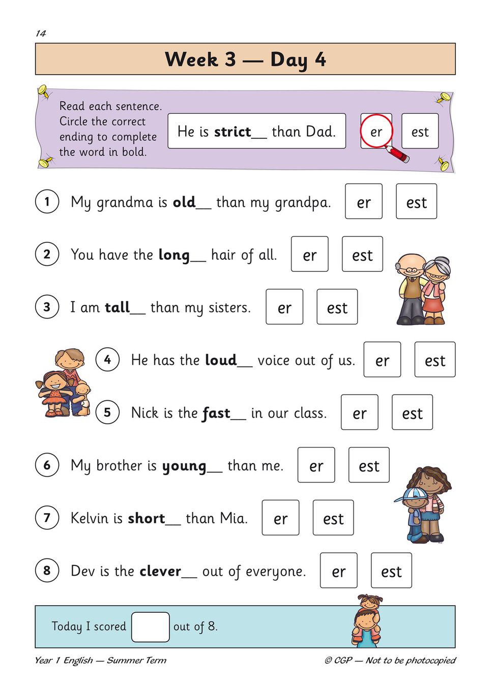 - One page of English practice for every school day of the summer term, covering spelling, punctuation, grammar, reading comprehension, handwriting and writing