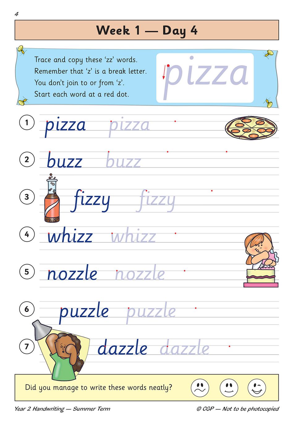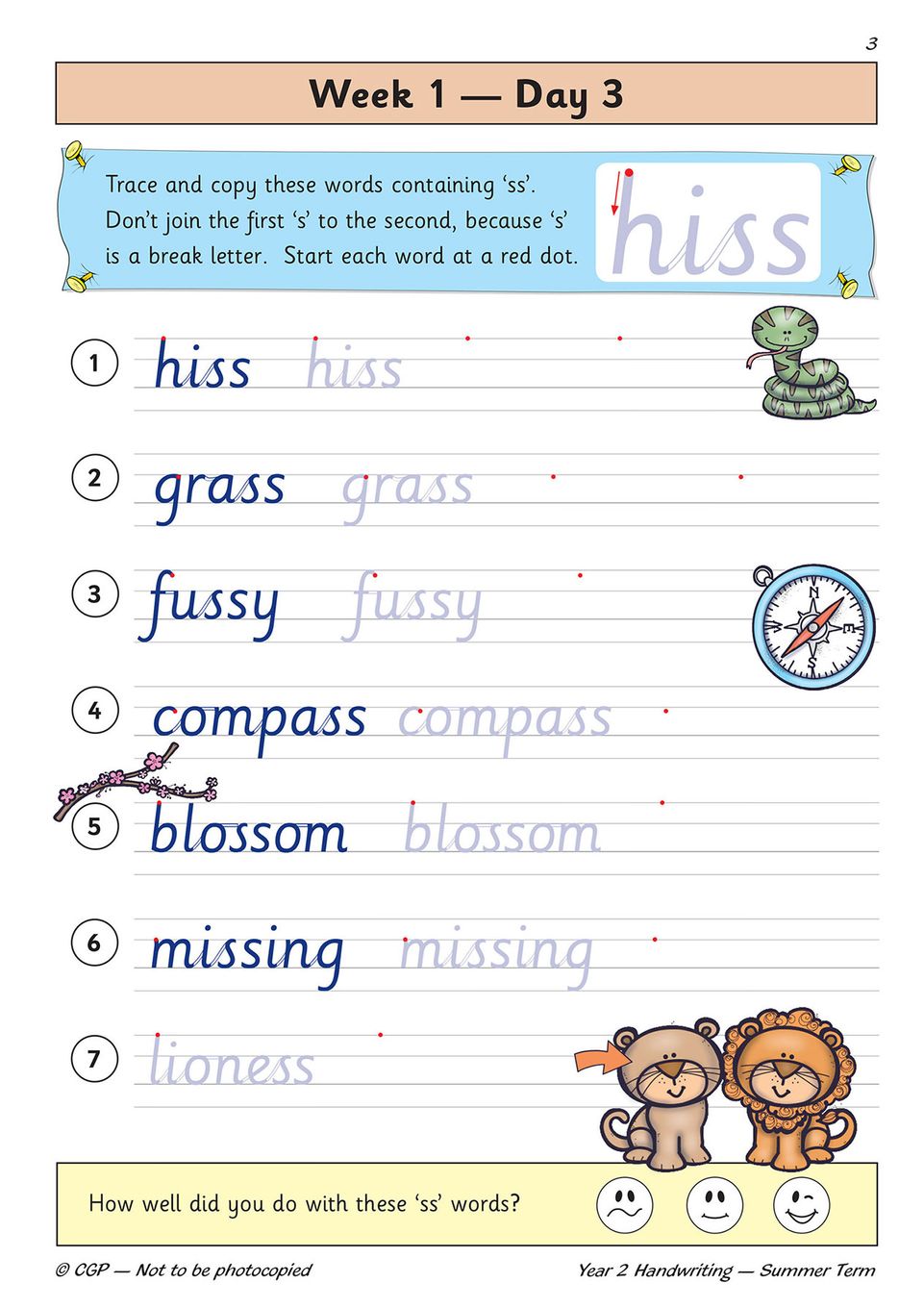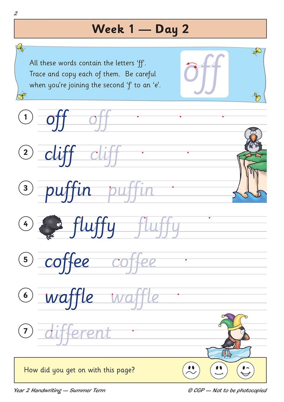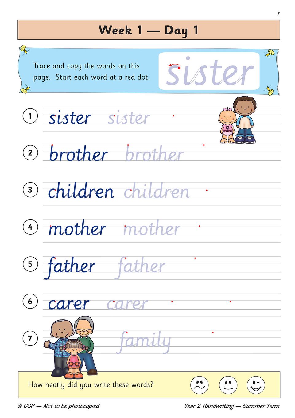 - Engaging illustrations and self-assessment smiley faces to keep Year 2 children (ages 6–7) motivated