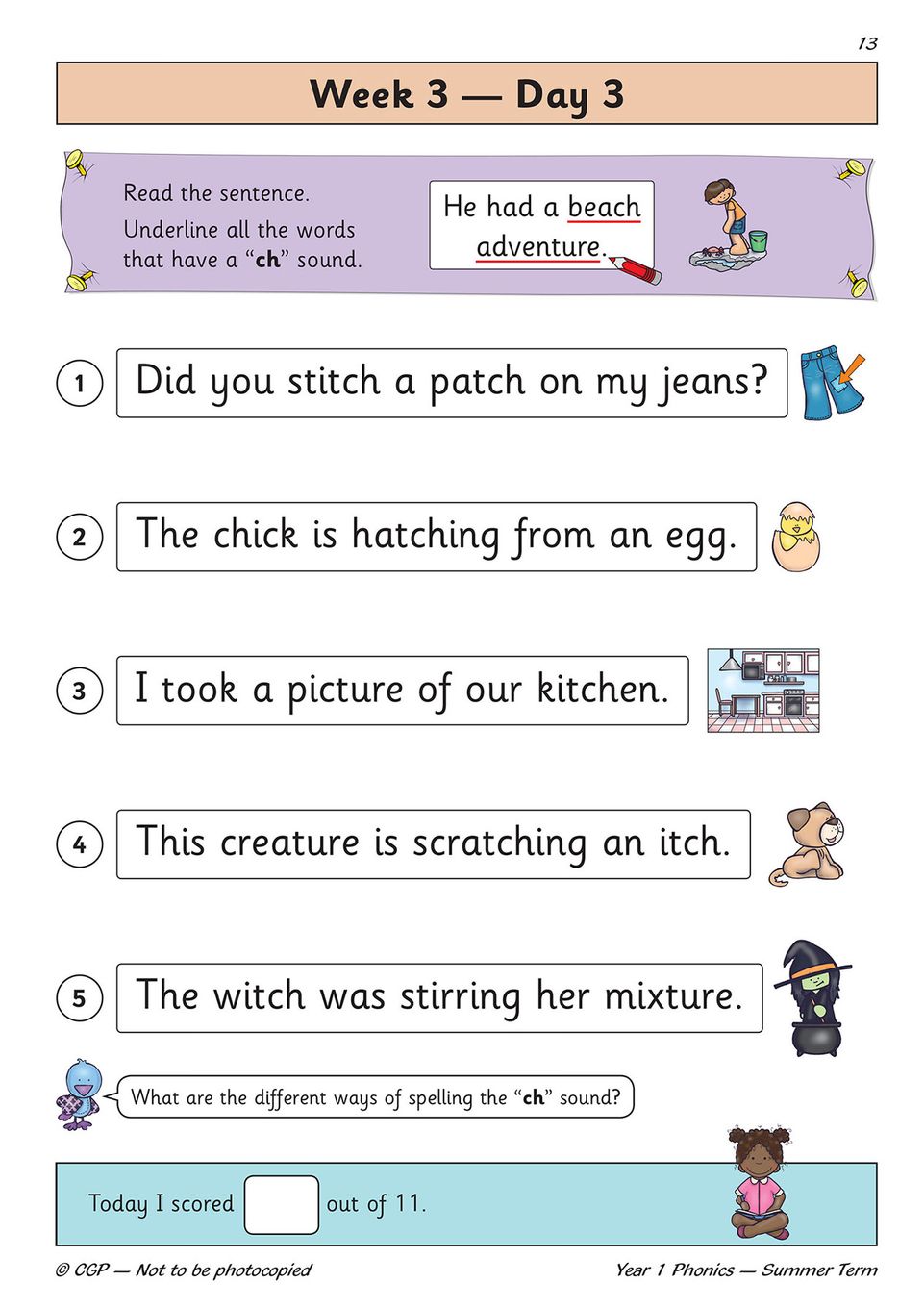 - Full-colour design with illustrations that keep Year 1 children engaged without distraction