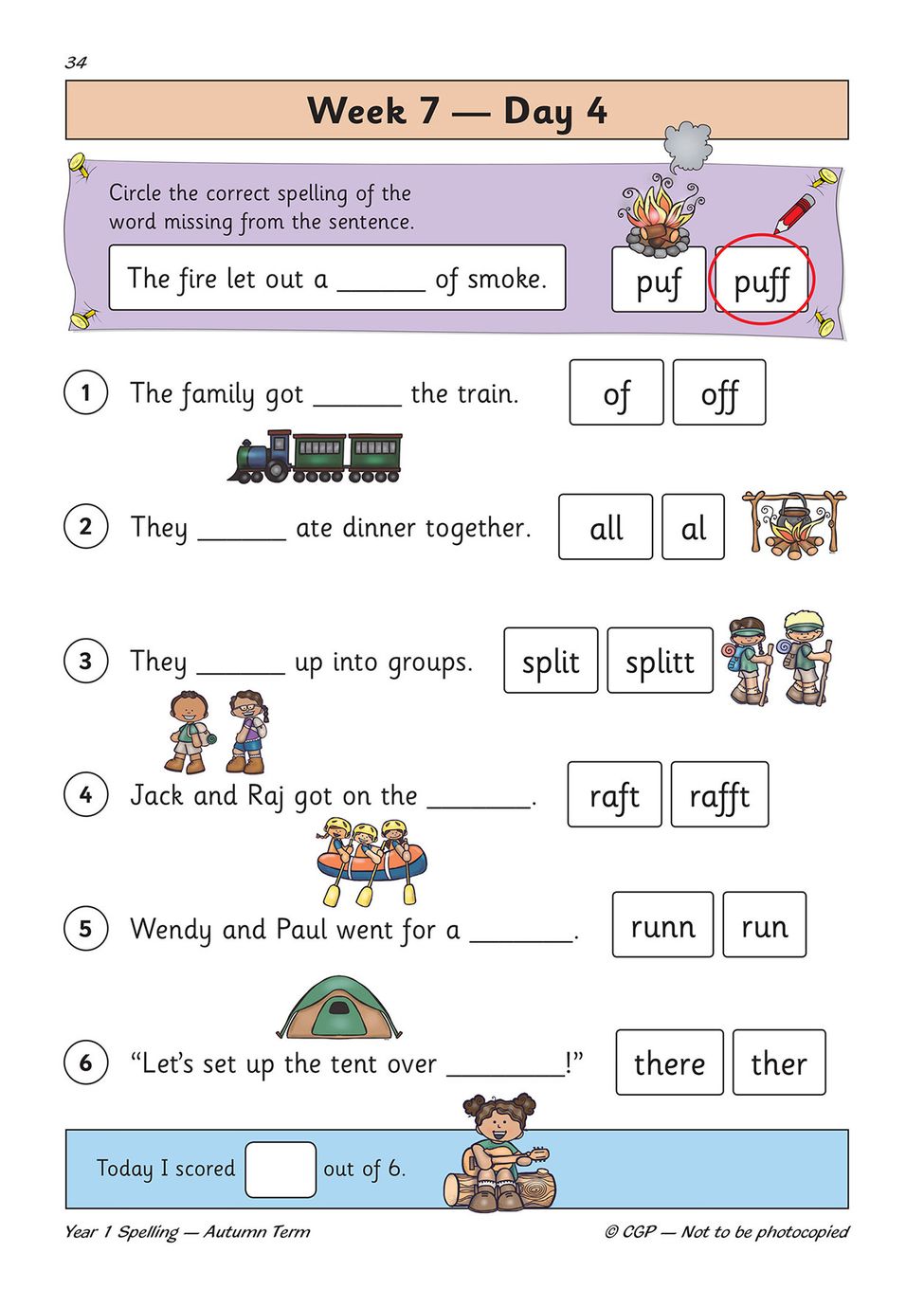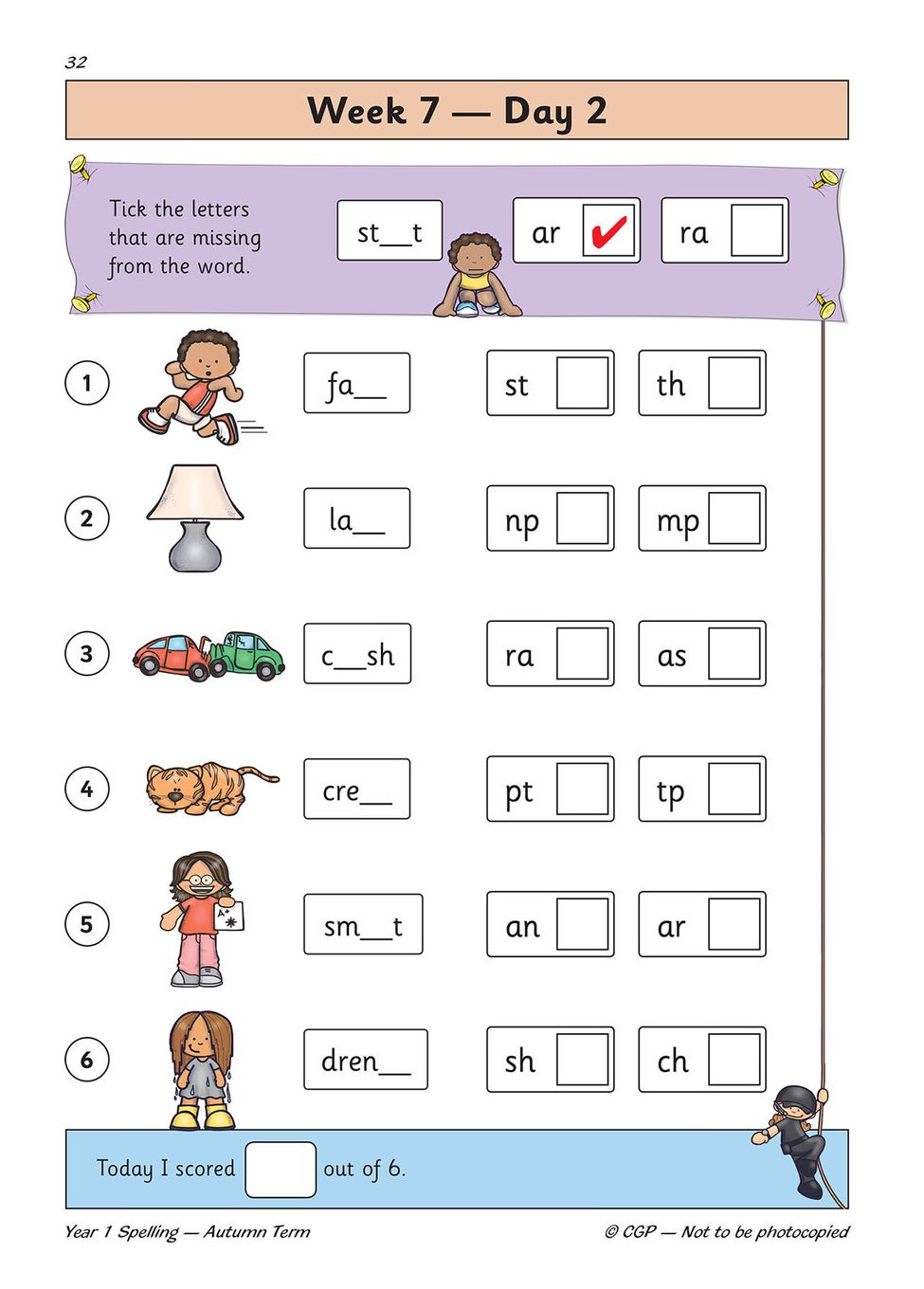 - 68 full-colour pages covering Autumn term spelling patterns for Year 1 (ages 5–6)