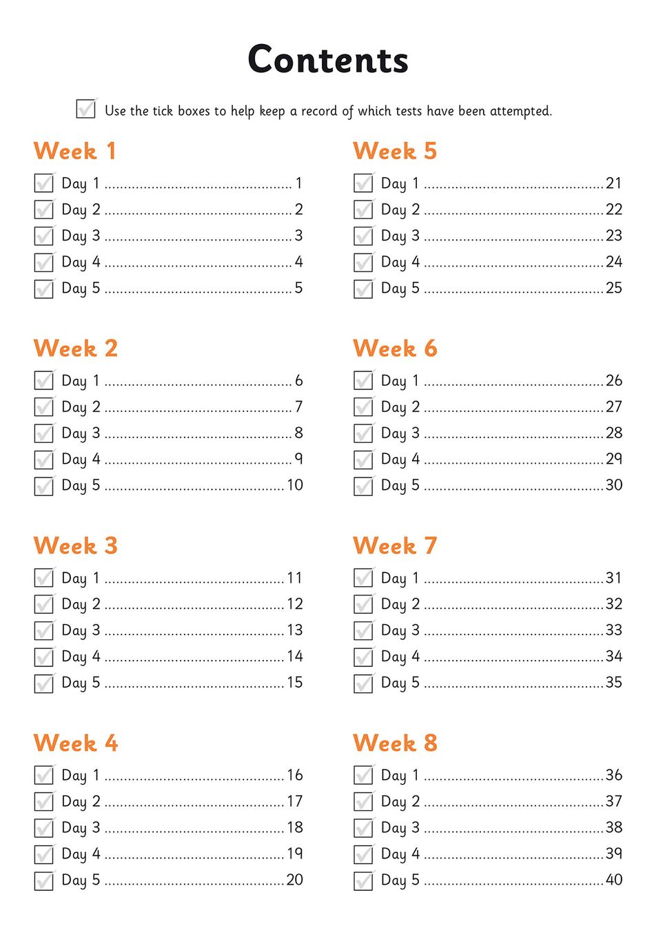 - Example question on each page models the task clearly before children begin