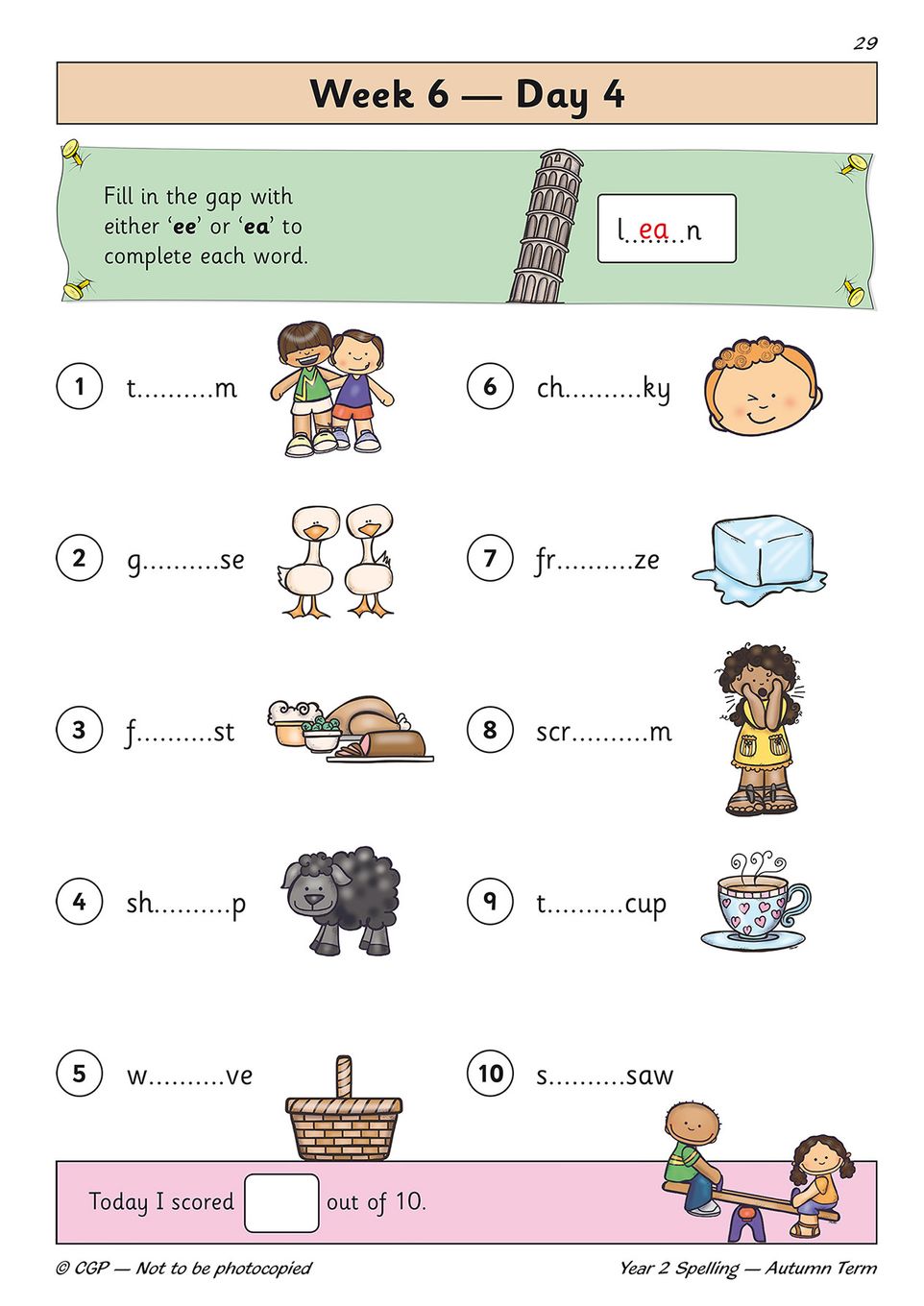 - One page of spelling practice for every school day of the autumn term, removing all planning stress
