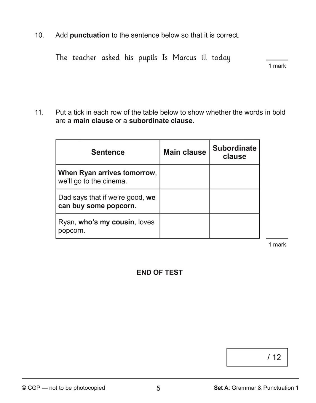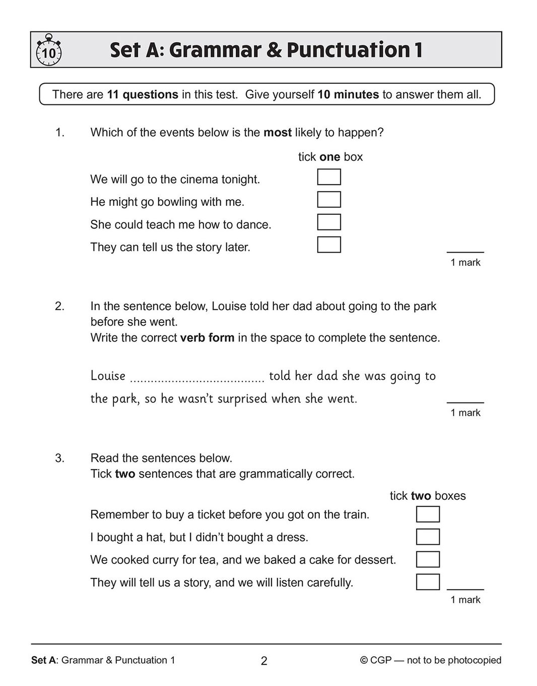 - Quick 10-minute tests in authentic SATs style for grammar, punctuation and spelling