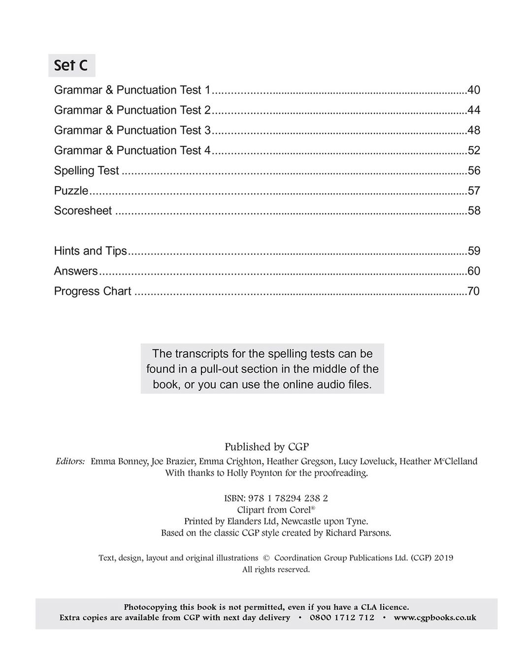 - Free online audio files for spelling practice, available on the CGP website