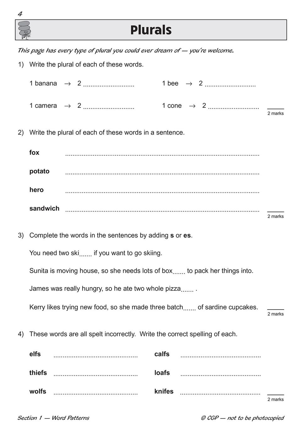 Because the workbook is structured around the official 2024 test format, your child builds genuine familiarity with how questions are phrased and how marks are awarded. They learn to spot the difference between *their* and *there*, to add suffixes without hesitation, and to tackle unusual plurals with confidence. Regular, short sessions turn spelling from a source of worry into a skill they can rely on under pressure, and the self-assessment feature encourages ownership of their revision rather than passive tick-box exercises.