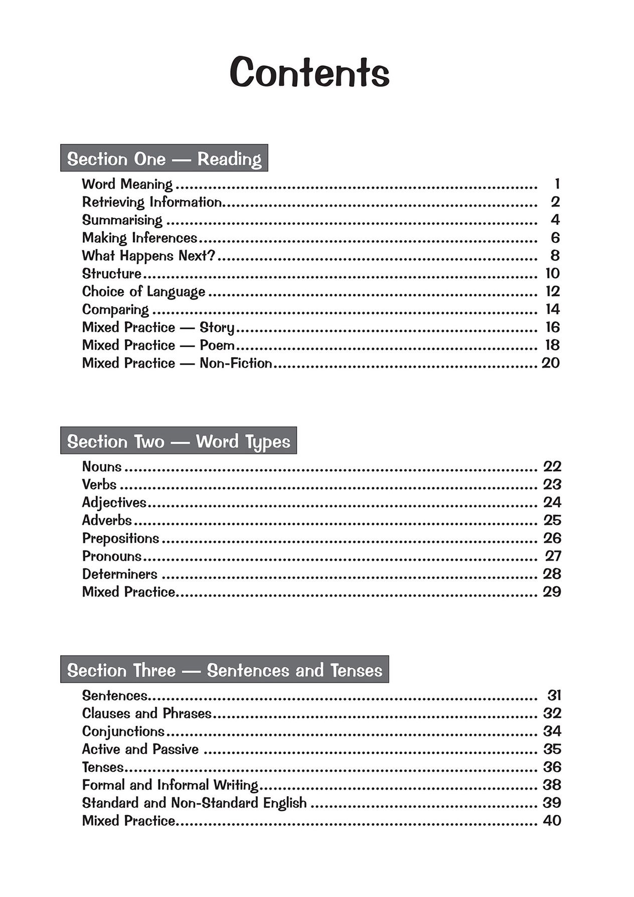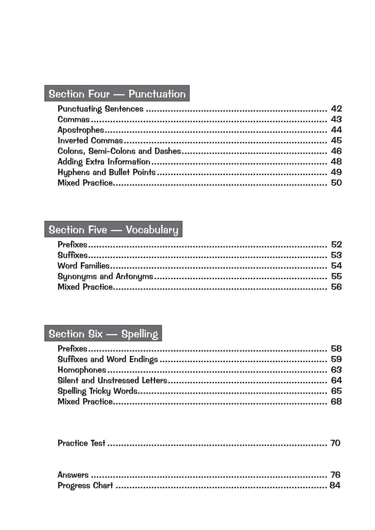 - Comprehension, Reading Comprehension, Spelling, Punctuation & Grammar, Vocabulary, Writing