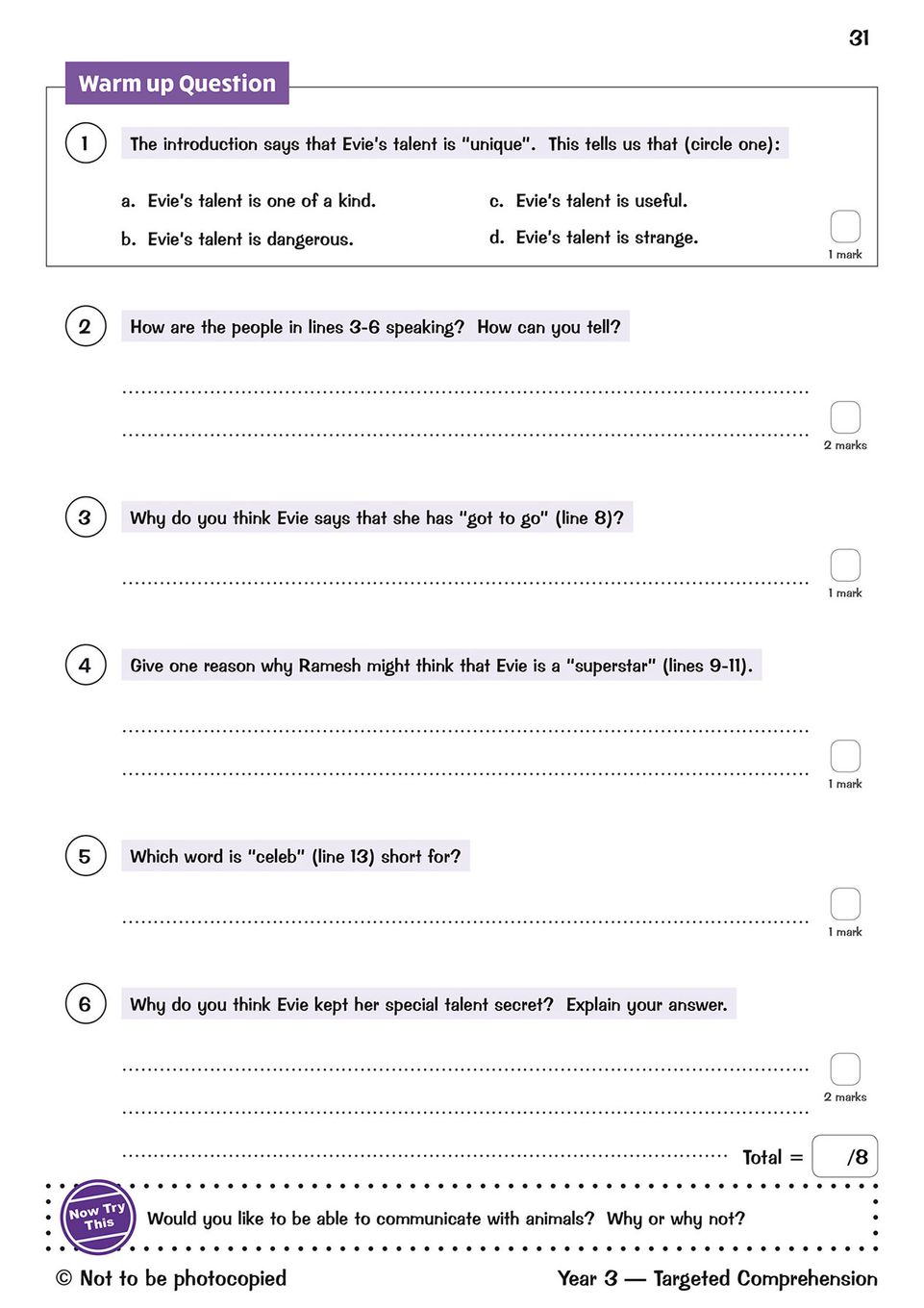 - Practice questions after every passage to build retrieval, inference and vocabulary skills