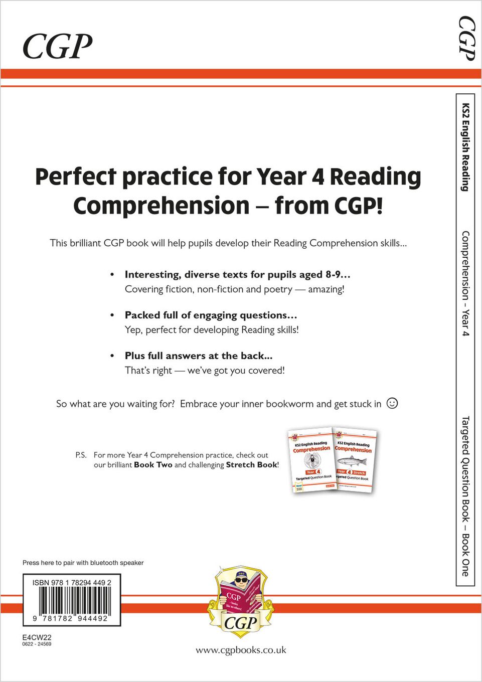 This single workbook suits Year 4 pupils who need regular comprehension practice at home or want to consolidate classroom learning. CGP's clear layout and complete answers make it straightforward for parents to support reading development, even when time is tight. A physical workbook, it ships directly to your door and works alongside Book 2 or the Stretch Book if your child wants further challenge later.