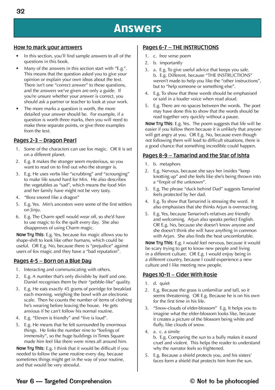 Finally, the KS2 English Year 6 Reading Comprehension Targeted Question Book - Book 1 (with Answers) is also very useful for children studying outside of the UK on comparable international curriculums such as the Cambridge Primary Curriculum or The Pearson Edexcel International Primary Curriculum.