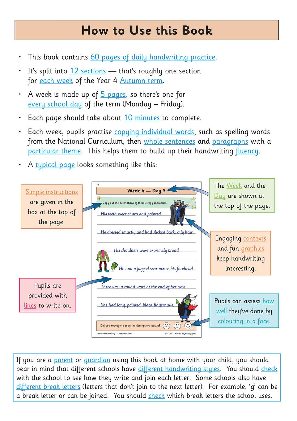 The KS2 Handwriting Year 4 Daily Practice Book: Autumn Term is absolutely perfect for children in Year 4 studying the national curriculum in England.