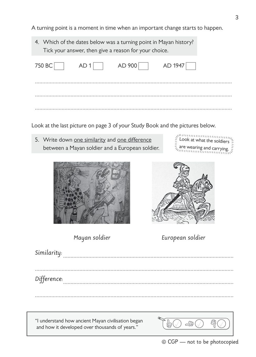 Each topic begins with clear learning objectives and tick-boxes, so you can track progress at a glance and spot any areas that need a little extra practice. Thought-provoking questions encourage your child to think deeply about Mayan culture, geography, and daily life, rather than simply memorising facts. Full answers are included at the back, giving you everything you need to check work and offer immediate feedback during homework sessions or revision time.