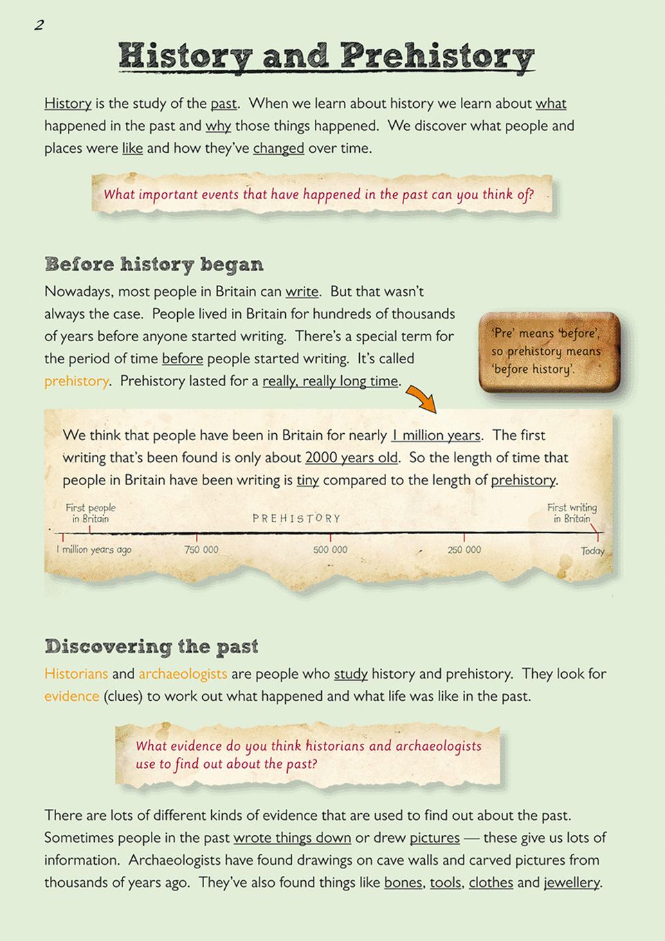 Each topic is presented in a pupil-friendly style, with full-colour timelines, photographs and illustrations that bring the Stone Age, Bronze Age, Iron Age and Celtic Britain to life. Clear headings break the content into manageable chunks, while questions throughout encourage children to think critically about how people lived, what evidence historians use, and why the past matters. The layout is designed to hold attention without overwhelming, making it easy for your child to pick up the book and explore independently or alongside you.