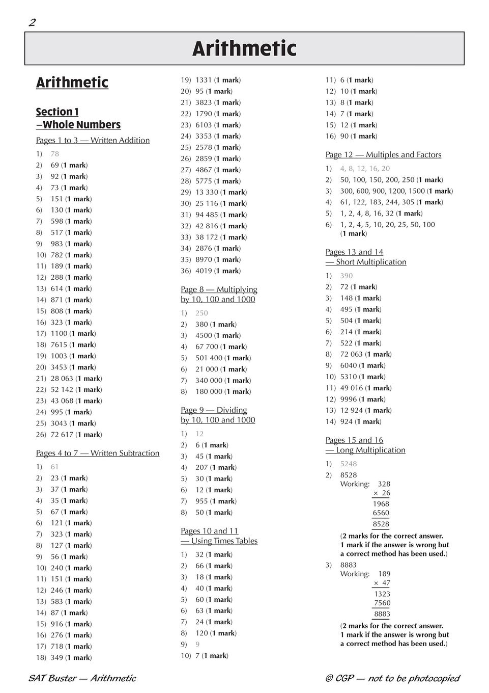 - Full answers for all three SAT Buster Book 2 titles: Number, Ratio & Algebra; Arithmetic; and Geometry, Measures & Statistics