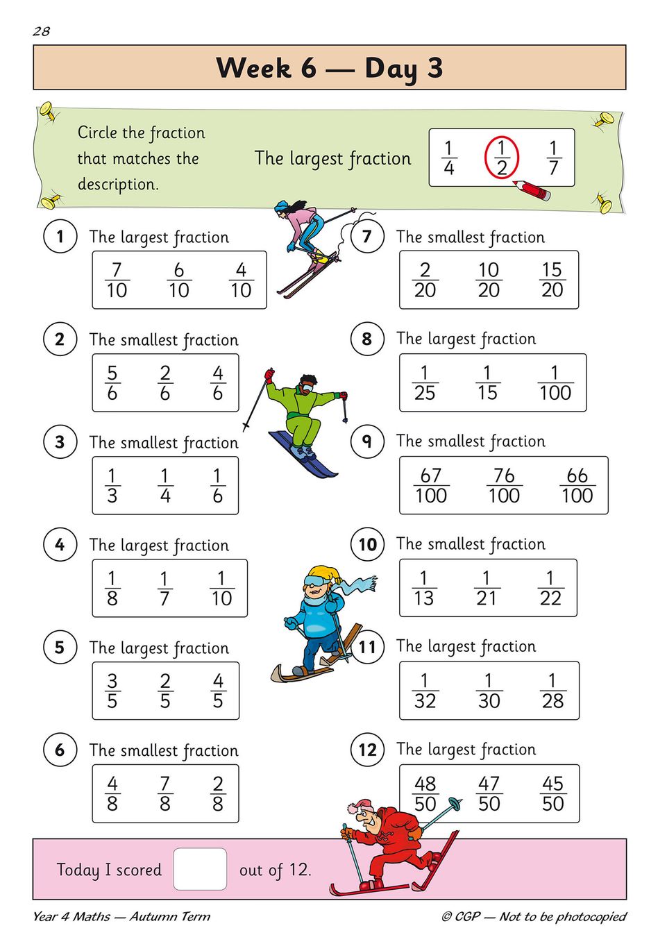 - One page of age-appropriate maths practice for every school day of the Autumn Term, covering fractions, times tables, mental arithmetic, time, shapes, geometry, statistics, and measurement