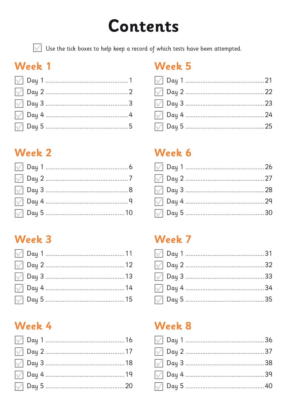 Each day begins with a short, friendly explanation followed by a carefully graded set of questions. New topics appear gradually, then revisit throughout the term so concepts stick naturally. Questions increase in difficulty through the week and across the term, meaning your child builds fluency without sudden jumps. Every page includes a score box so you can spot progress at a glance, and full answers sit at the back for quick, confident marking. Colourful characters and engaging activities keep children motivated, whether they practise at home after school or use the book alongside classroom work.