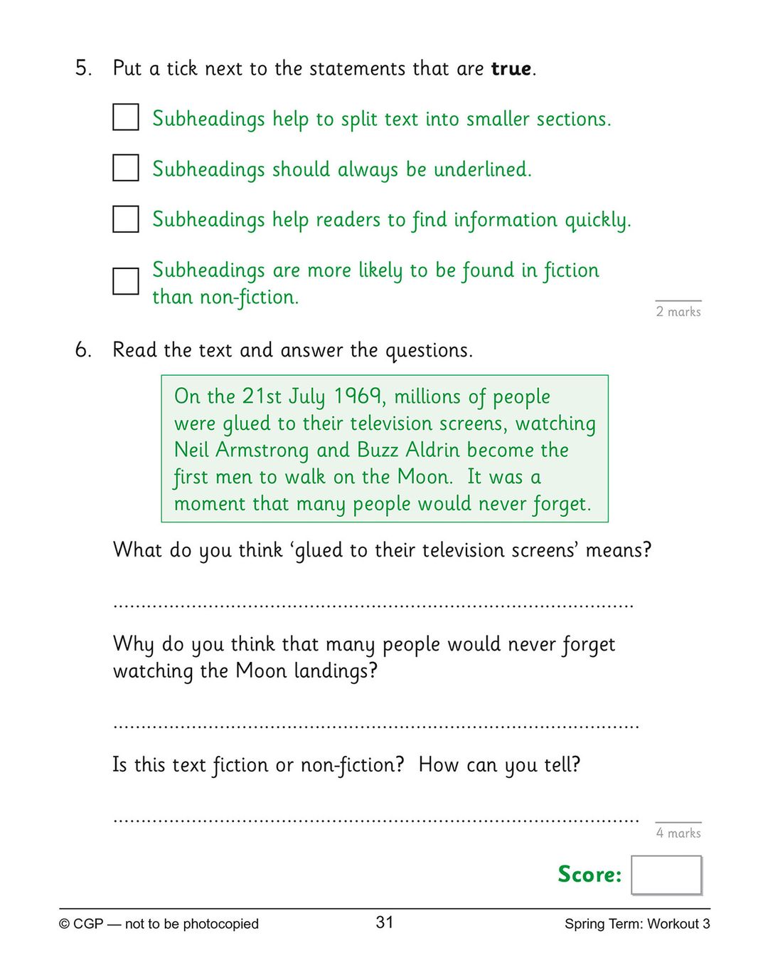 - Reading Comprehension, Spelling, Punctuation & Grammar, Writing