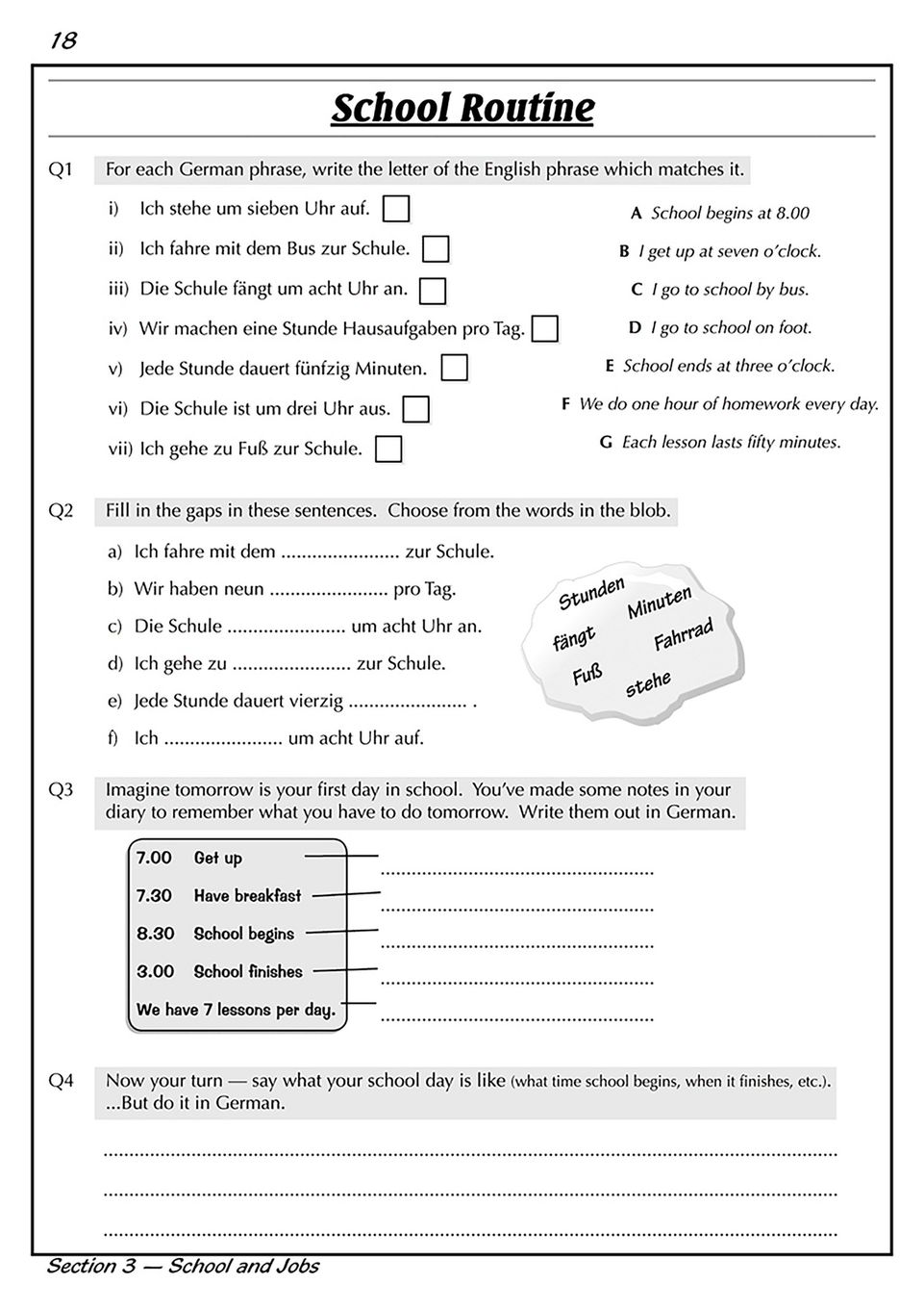 The KS3 German Workbook (Ages 11-14) is absolutely perfect for children in Year 7, Year 8 or Year 9 studying the national curriculum in England.