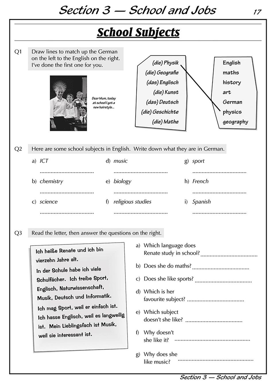 Finally, the KS3 German Workbook (Ages 11-14) is also very useful for children studying outside of the UK on comparable international curriculums such as the Cambridge Primary Curriculum or The Pearson Edexcel International Primary Curriculum.