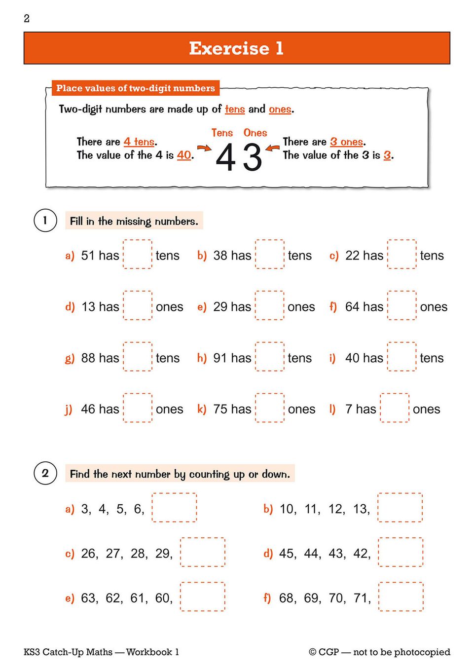 The KS3 Maths Catch-Up Workbook 1 (with Answers) is absolutely perfect for children in Year 7, Year 8 or Year 9 studying the national curriculum in England.