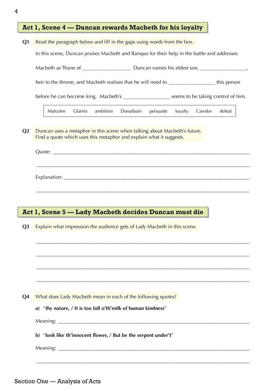 The Macbeth Workbook (Ages 14-16) is absolutely perfect for children in Year 10 or Year 11 studying the national curriculum in England.