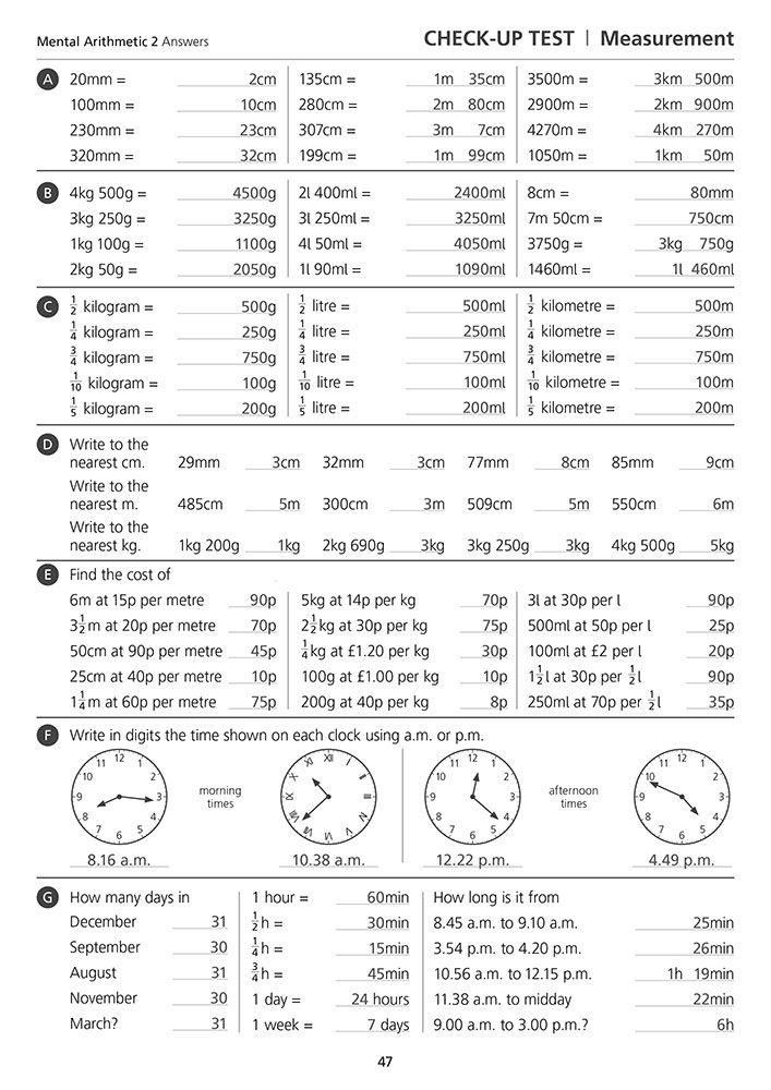 - Complete answers for every question in the Mental Arithmetic 2 pupil book, laid out in the same format for fast, accurate marking