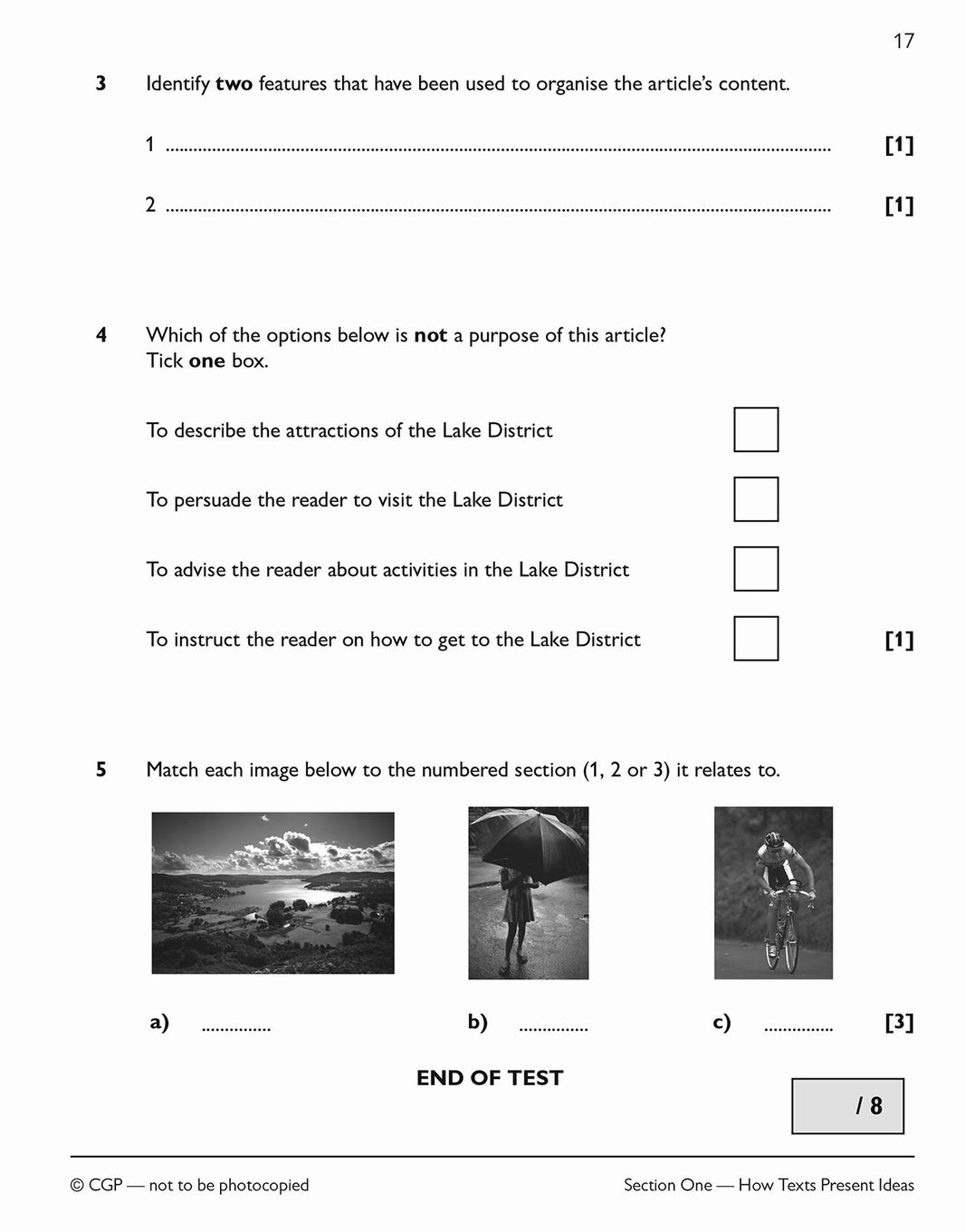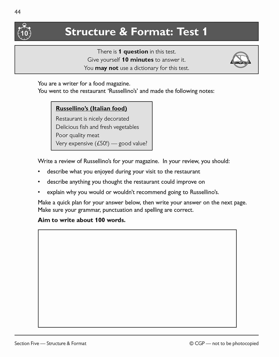 The book is organised into seven clear sections, mixing short-answer questions on reading and grammar with longer written tasks, so your learner rehearses every skill they'll meet in the real exam. Sample answers and mark schemes sit at the back, making it easy to check work independently and understand what a strong response looks like. A handy progress chart lets you both see improvement at a glance, and because each test is quick, it's simple to slot practice into a busy week without adding stress.