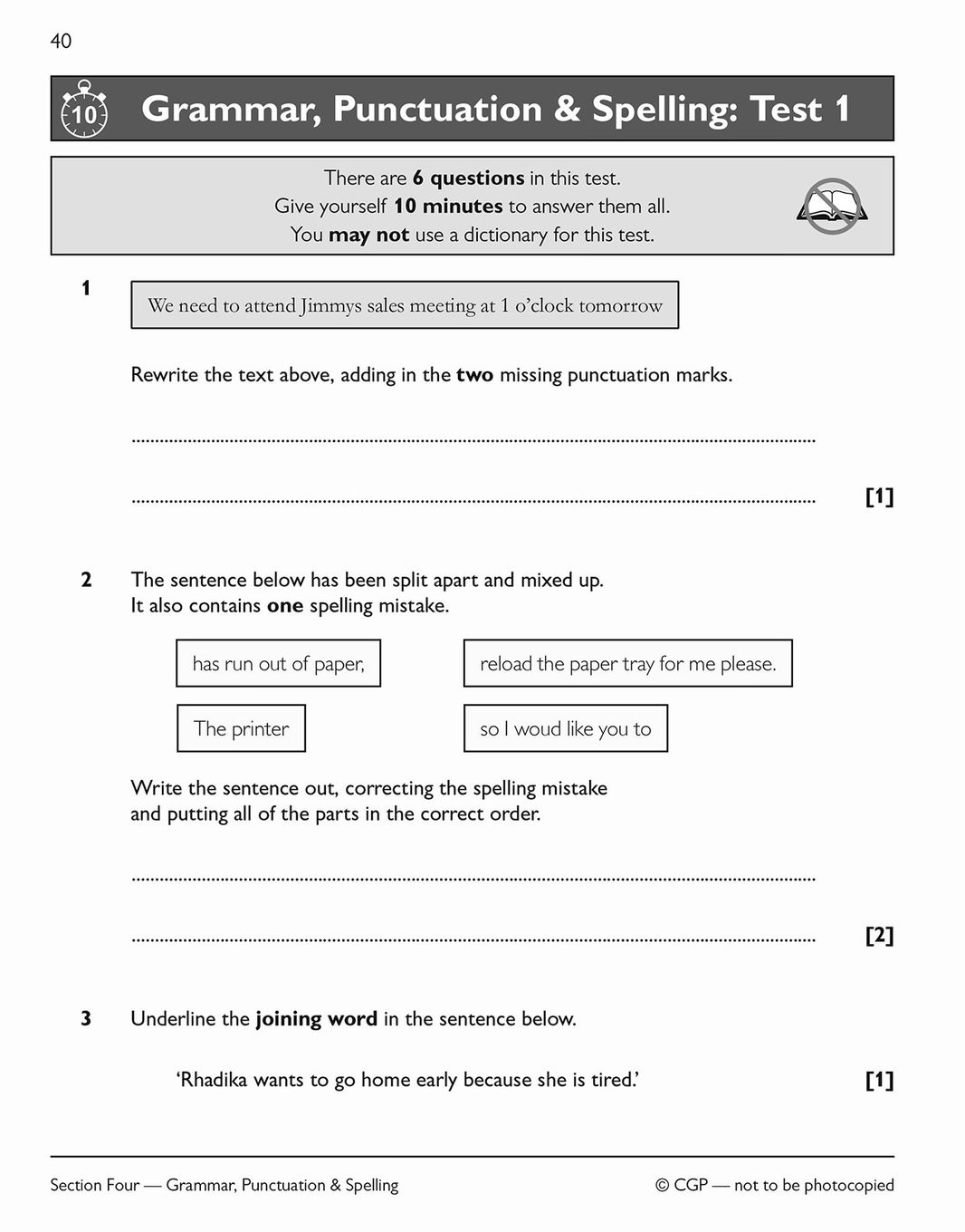 - 30 quick-fire tests covering reading, spelling, punctuation, grammar, and writing at Level 1 standard