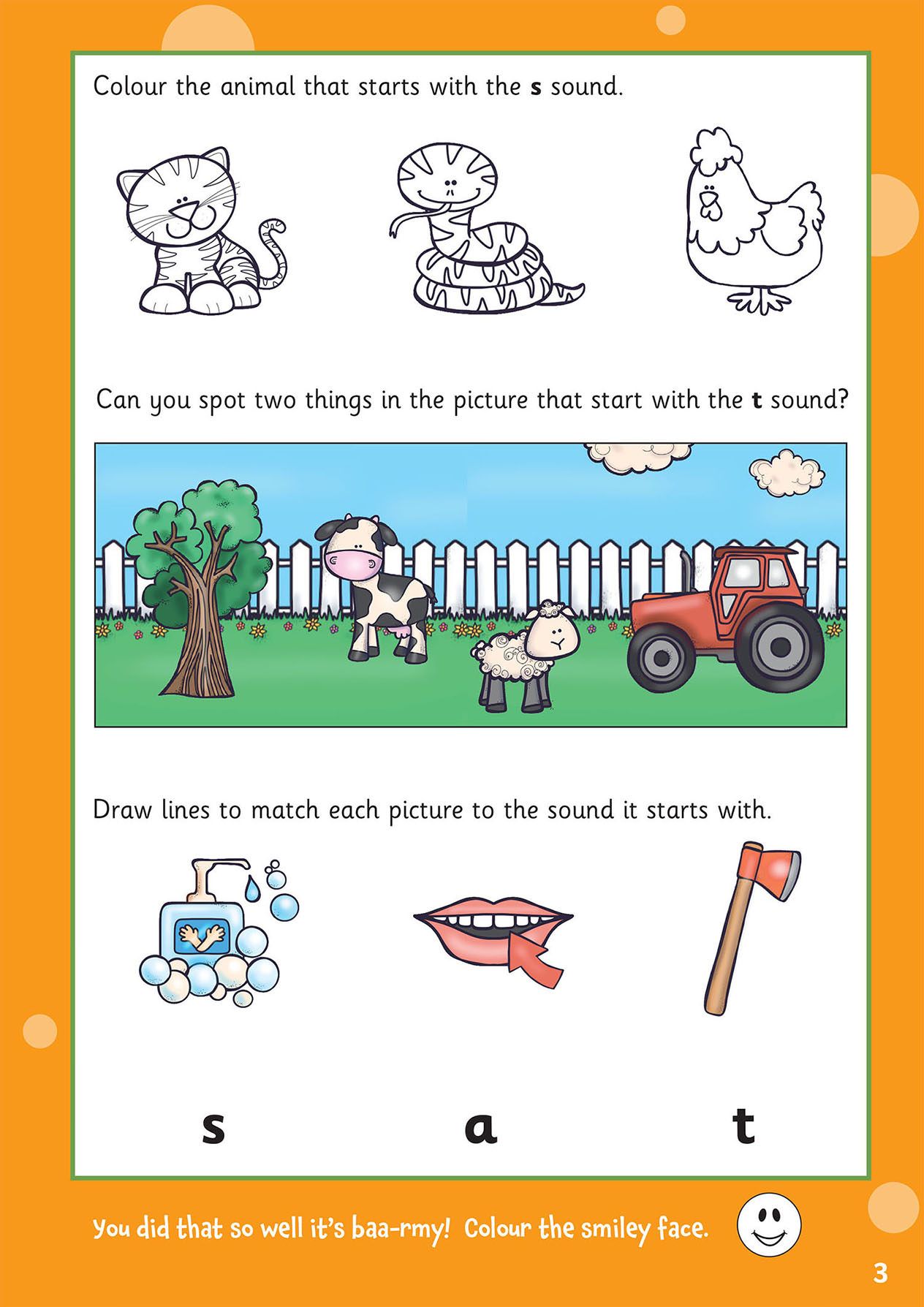 - Covers initial letter sounds (s, a, t and more) with colourful, age-appropriate illustrations