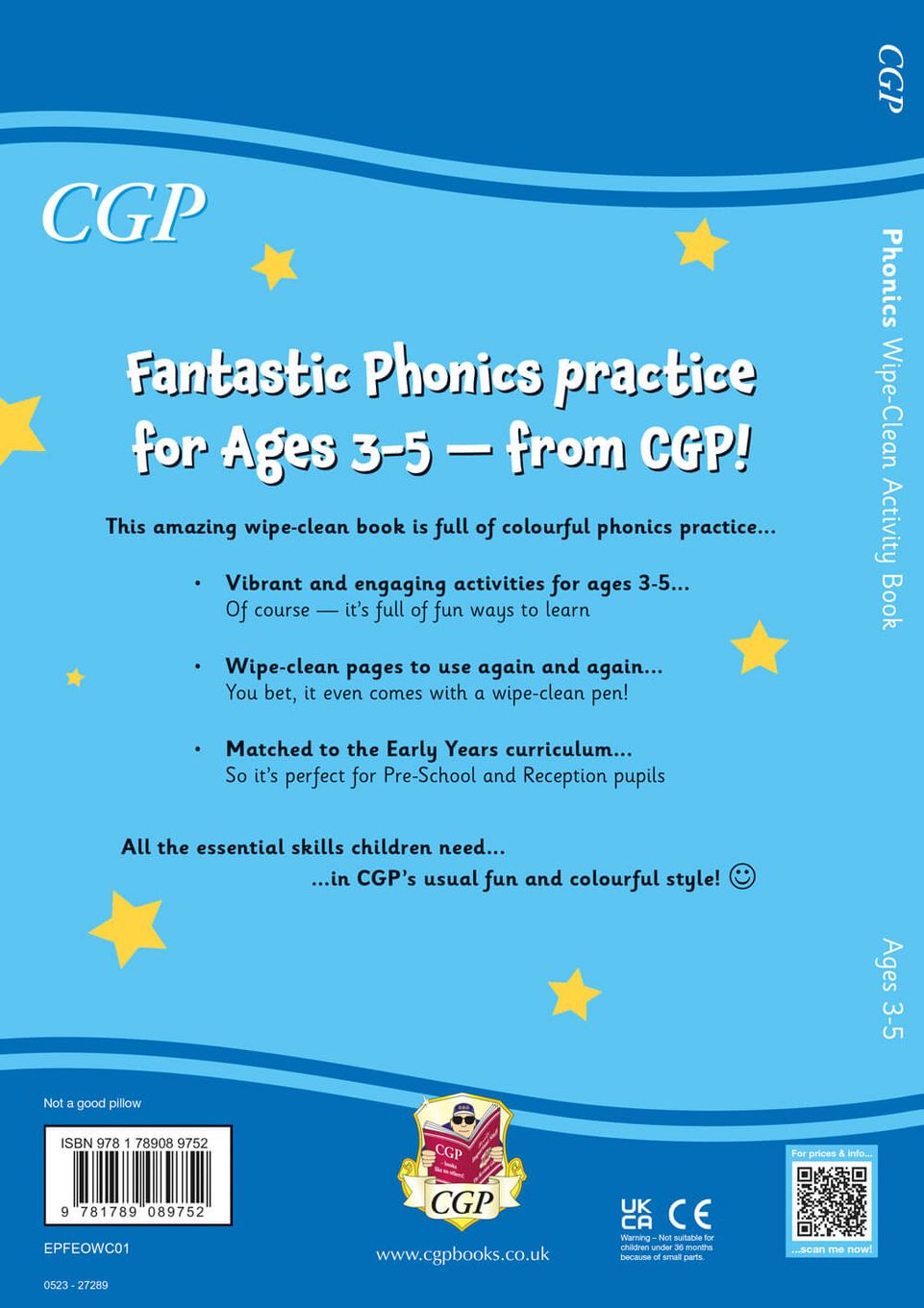 - • BUILD early phonics skills with reusable wipe-clean pages and included pen